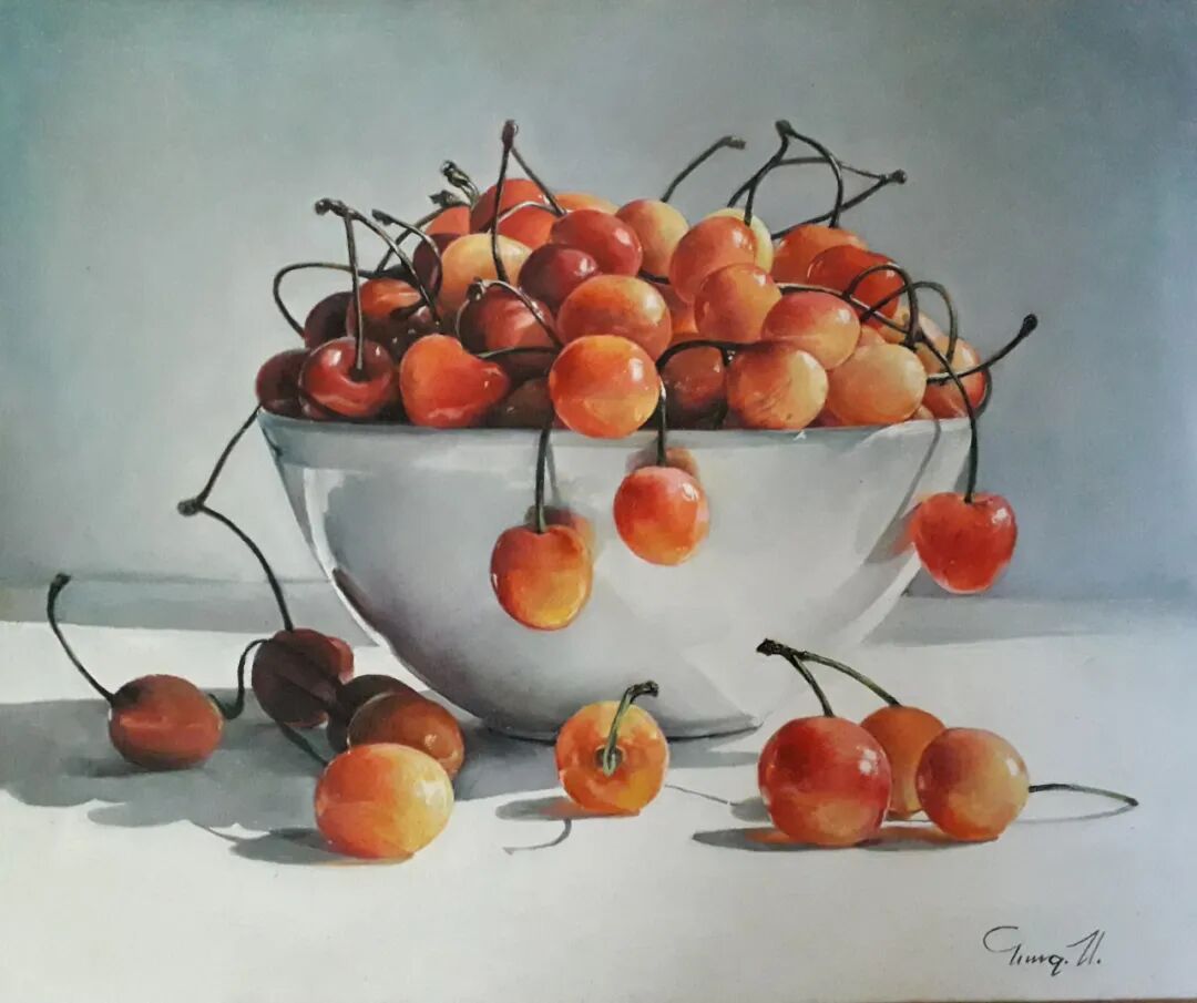 还是看作品吧,这都是画家自己挑选并提供的一组静物系列。