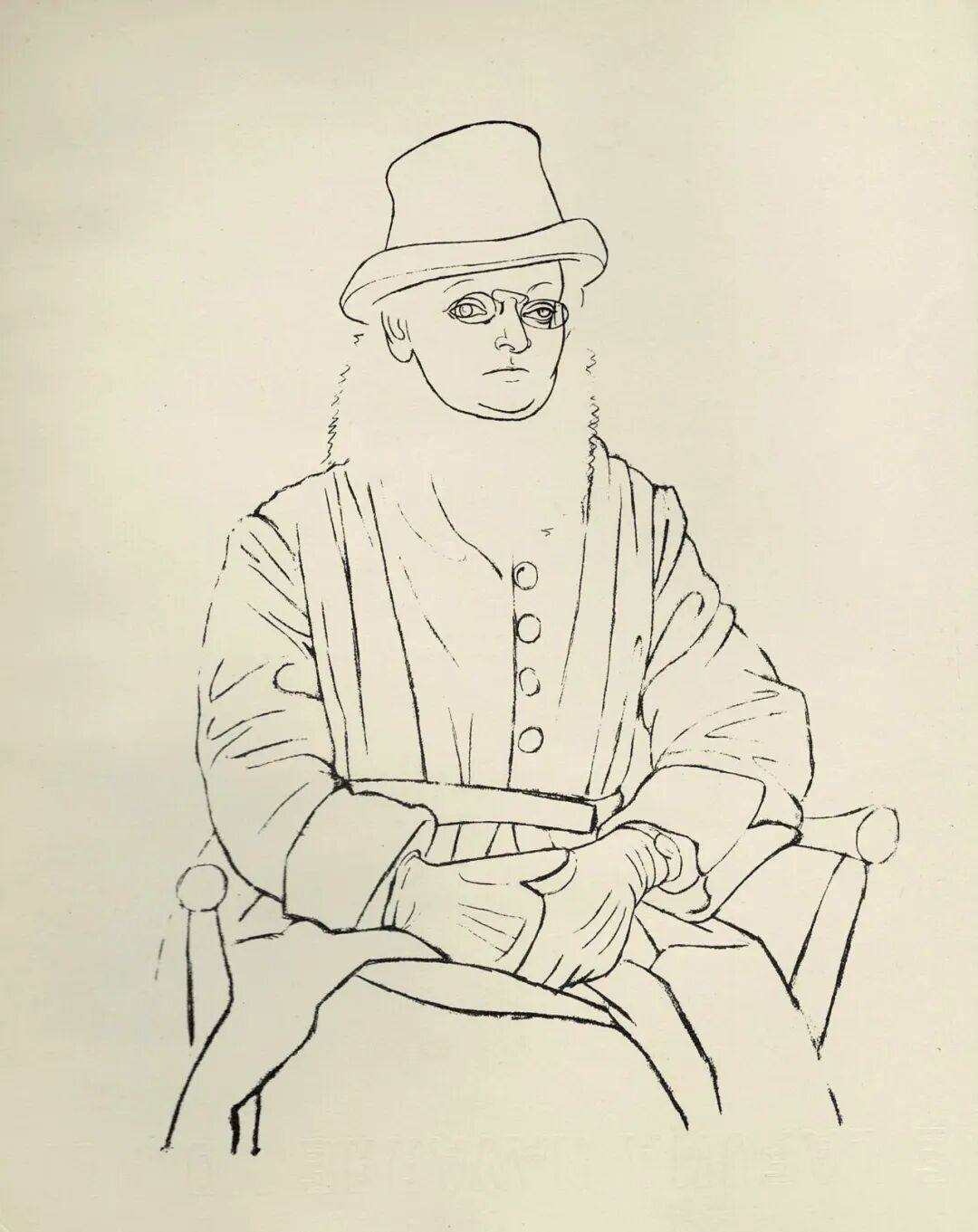 毕加索为贝尔特 威尔画的肖像,Pablo Picasso, Portrait de Berthe Weill, crayon comté et fusain, 62 x 47 cm, 1920,