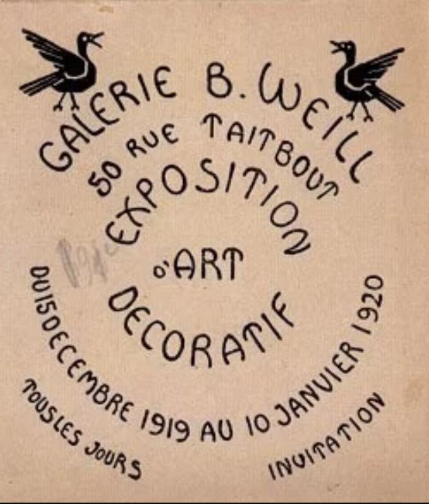 B. Weill 画廊的邀请函,Invitation for the B. Weill Gallery, 1920, private collection. Archives Berthe Weill.