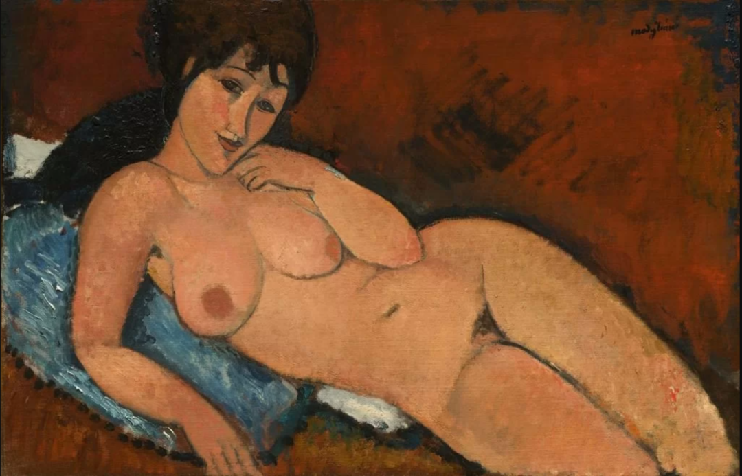 阿梅代奥·莫迪利亚尼,蓝色靠垫上的裸体,Amedeo Modigliani, Nude on a Blue Cushion, 1917, National Gallery of Art, Washington, DC, USA.
