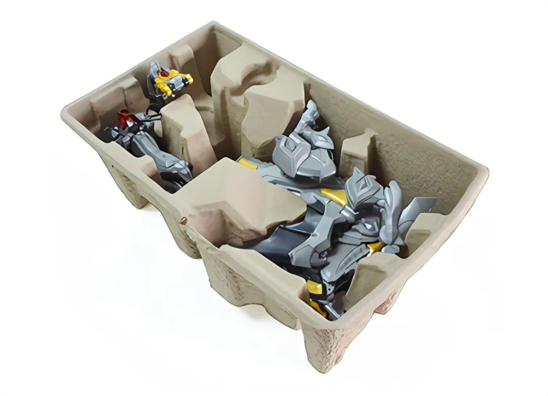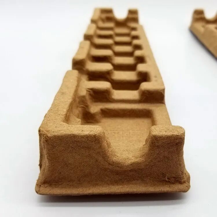 是以废纸为原料、添加部分防潮剂(硫酸铝)或者防水剂,然后根据不同的用途制成各种形状的模型制品。用来作为鸡蛋、水果、精密器件、易破易碎的玻璃、陶瓷制品、工艺品等的包装衬垫,有良好的缓冲保护性能。生产纸浆模塑技术设备发展很快,基本工艺过程是浆料制备、模塑成型,干燥,整形四道工序。国内主要是半自动的设备,而国外几乎都是全自动高耗能流水线。