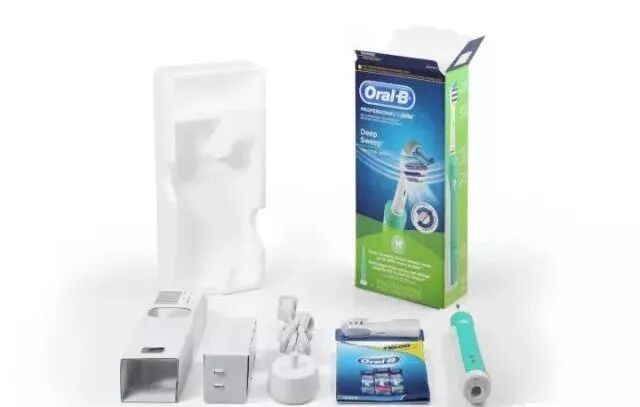 Oral-B是市场上最受欢迎的电动牙刷品牌之一。拥有全球电动牙刷近三分之二的市场份额。他们的产品系列适合各种不同的预算和刷牙需求。作为行业龙头,其包装设计必定有很多沉淀 。这款电动牙刷老款包装如下,原先采用卡纸外盒+泡沫塑料+瓦楞小盒的多组合包装,无论在成本、美观,还是产线操作便捷性等方面都没有优势。
