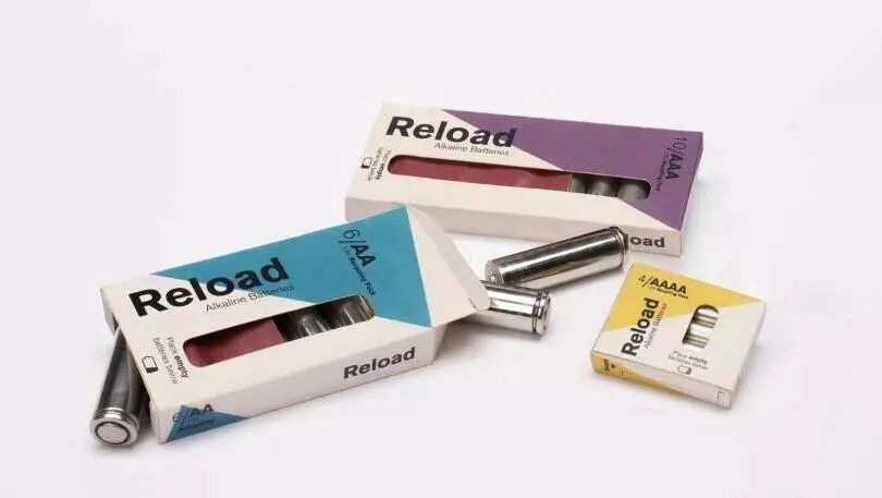 Reload 电池包装允许在同一包装中存放新电池和旧电池。在包装顶部,用户可以取出所需数量的电池,并在电池电量用尽时将其重新插入底部。这样就无需为旧电池找专用的盒子,做到统一收纳废电池,避免污染环境。而用红色的纸条可以从视觉上分离新、旧电池。这款概念设计可适用于不同尺寸和类型的电池。包装完全由纸制成,避免了塑料和不同材料的组合,从而简化了废物的分离和回收过程。