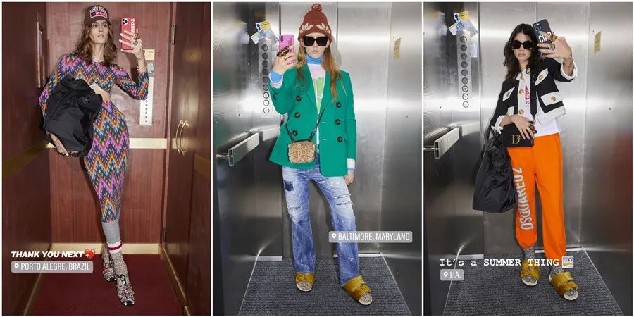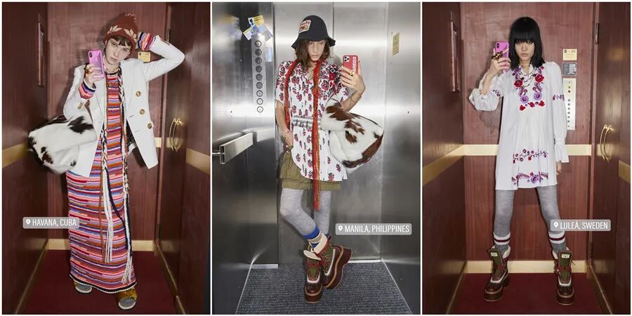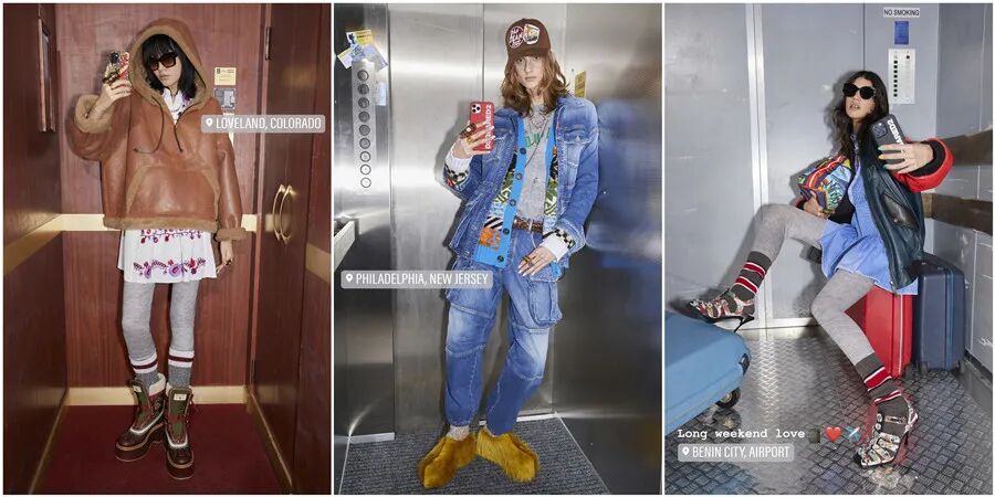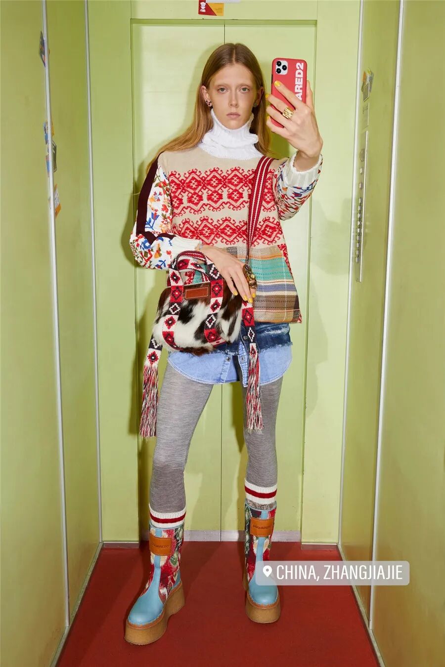 日前,Dsquared2 发布了2022 早秋系列,该系列是在电梯模型中拍摄的,每张照片都借鉴了Ins上大火的「elevatorselfies」风格。