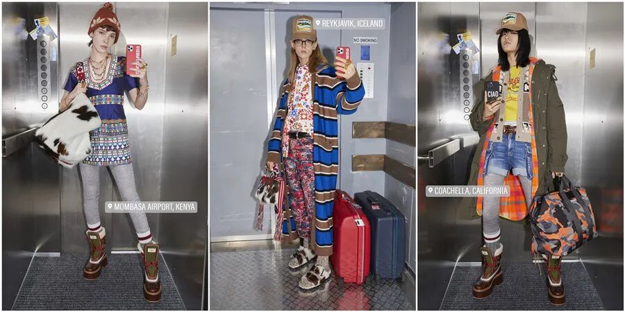 本季融合了休闲、运动及波西米亚等风格,加之以其本身得心应手的混搭方式呈现,整体造型丰富却不杂乱,例如精巧而有质感的针织品、70年代大号羊皮连帽衫、恰到好处的配饰搭配等等,有趣又实穿。