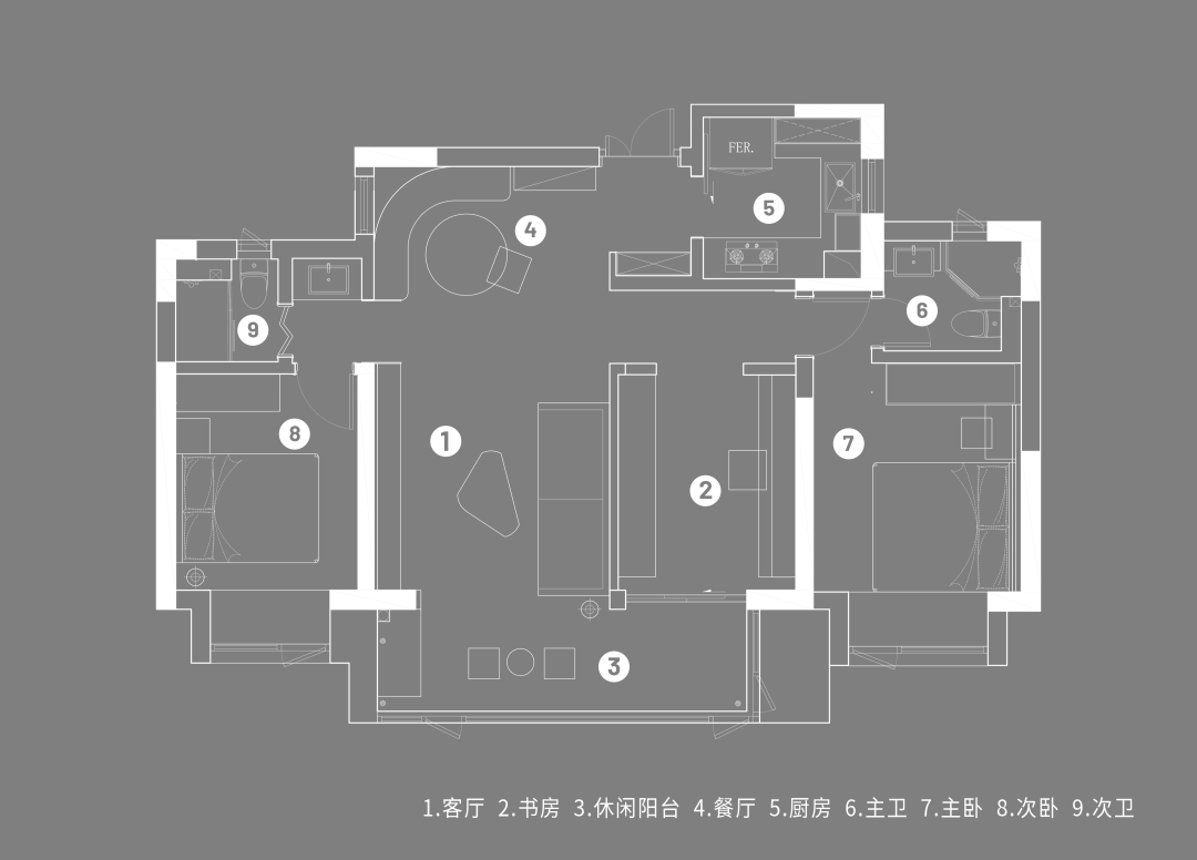 对于朝九晚五的上班族来说,一间舒适的书房像是能量场域般的存在。我们把连接阳台的房间改造成双人书房,或许它的存在,能让业主在马不停蹄的日常里或是气场太弱时,来一场满血复活的游戏,扔掉麻烦,回到可感知的生活中去。
