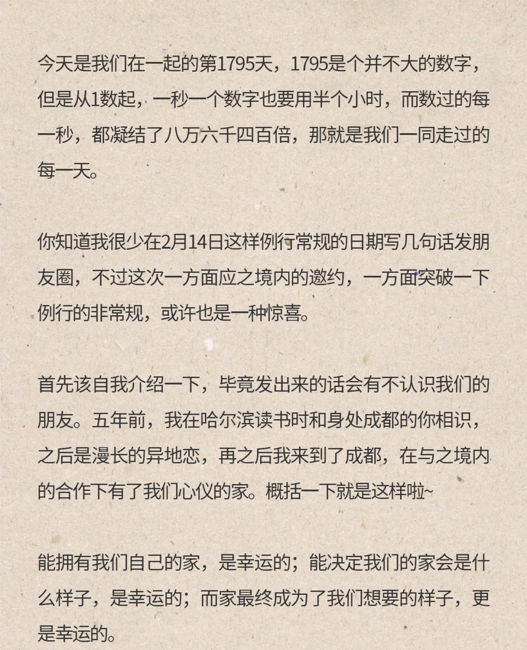 收到男业主的信,是我们意料之外的惊喜。字里行间,回忆起他们与时间距离抗衡的日子,从无到有共同筑家的日子,现在看来都变得确然可靠,有迹可循。