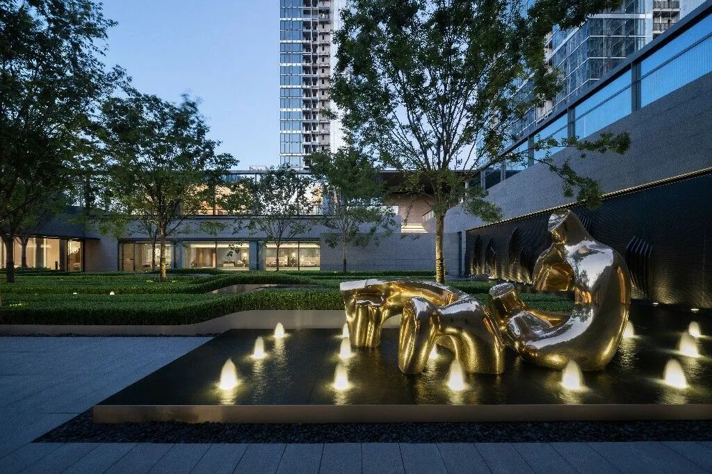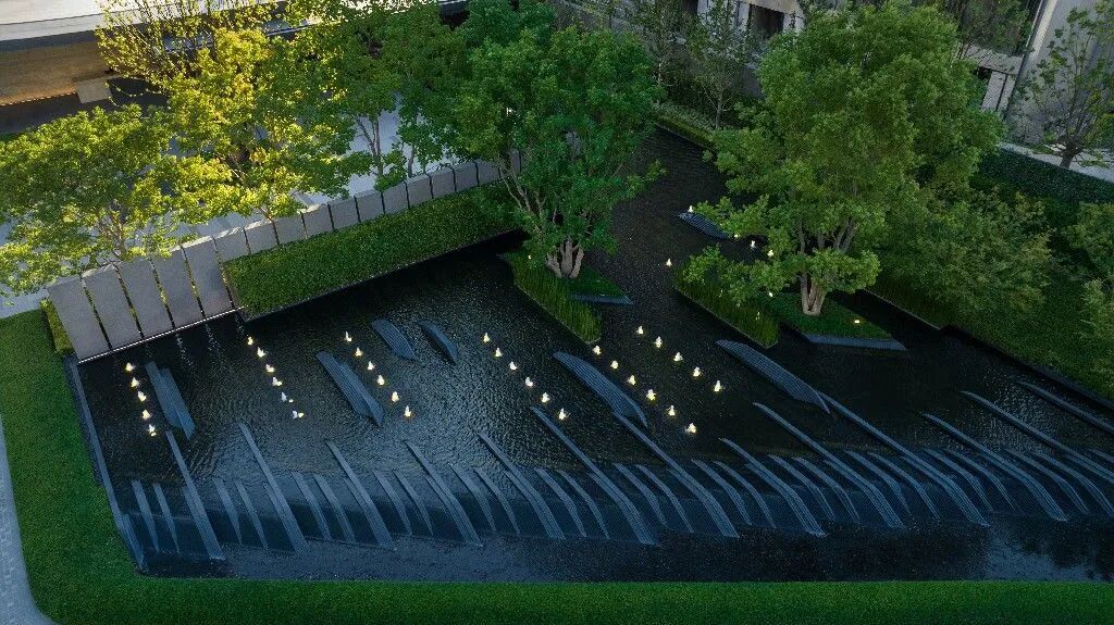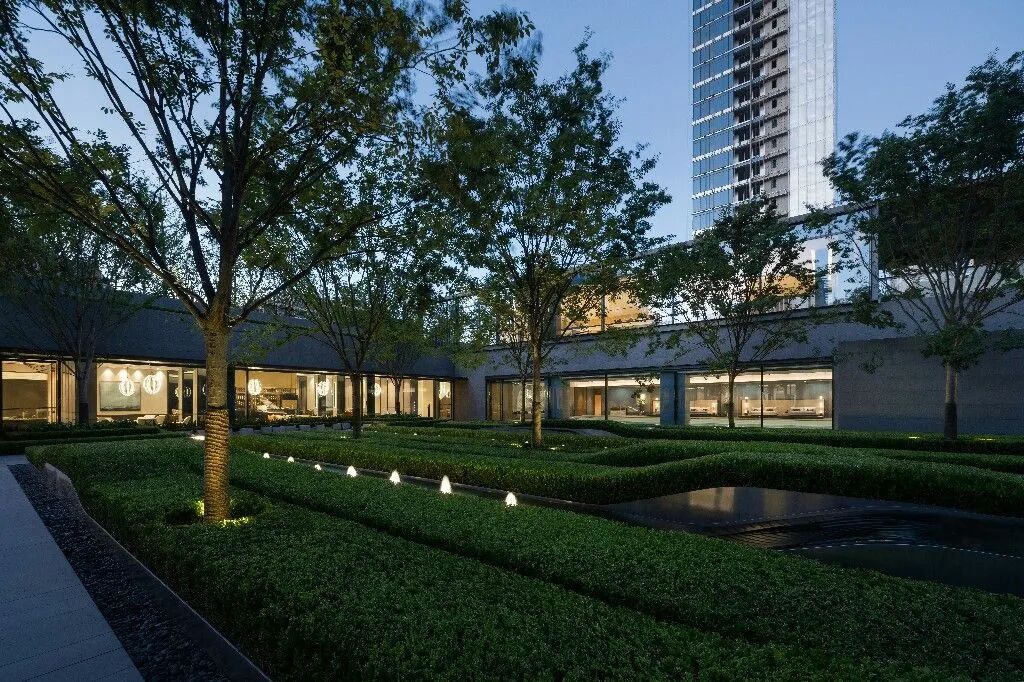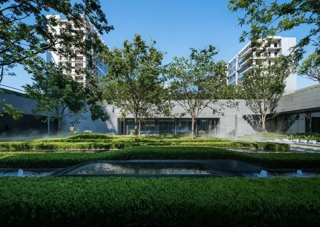 售楼处结合前院艺术广场及后院下沉休闲庭院形成完整组团