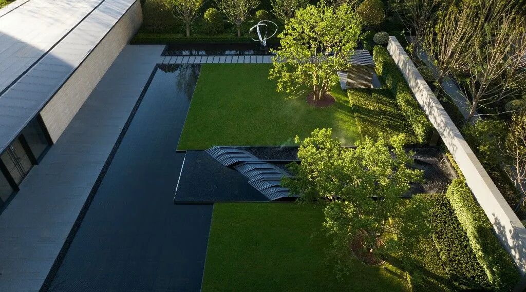 日间明朗、夜间浪漫的景观构筑物,花镜与草坪结合丰富花园体验