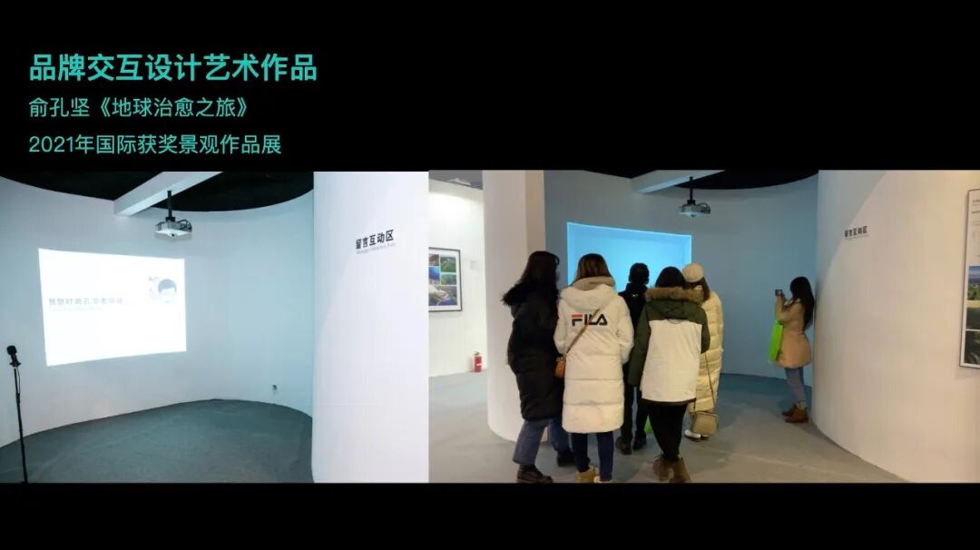 我们能为客户的设计作品赋能科技、艺术的提升竞争力的同时我们也拥有,裸眼3D动画、互动艺术装置、沉浸式空间、趣味互动、互动橱窗等一站式从创意到施工一体化解决方案,让科技技术与设计、艺术结合为品牌赋能, 实现“智能对话能力”创造更多商业价值。最后,分享我们在俞孔坚老师 2021年于上海《地球治愈之旅》国际获奖景观作品展中实践的案例作品。
