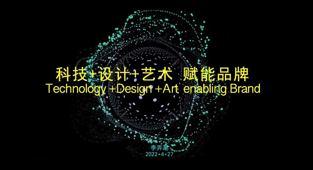 最后,由品牌感知交互设计研究室联合发起人,技术总监 李弄潮先生,分享主题为《科技+设计+艺术 赋能品牌》以元宇宙的概念作为开篇,指一个平行于现实世界运行的人造数字空间。它脱胎于现实世界,又与现实世界平行,元宇宙的六大核心技术。