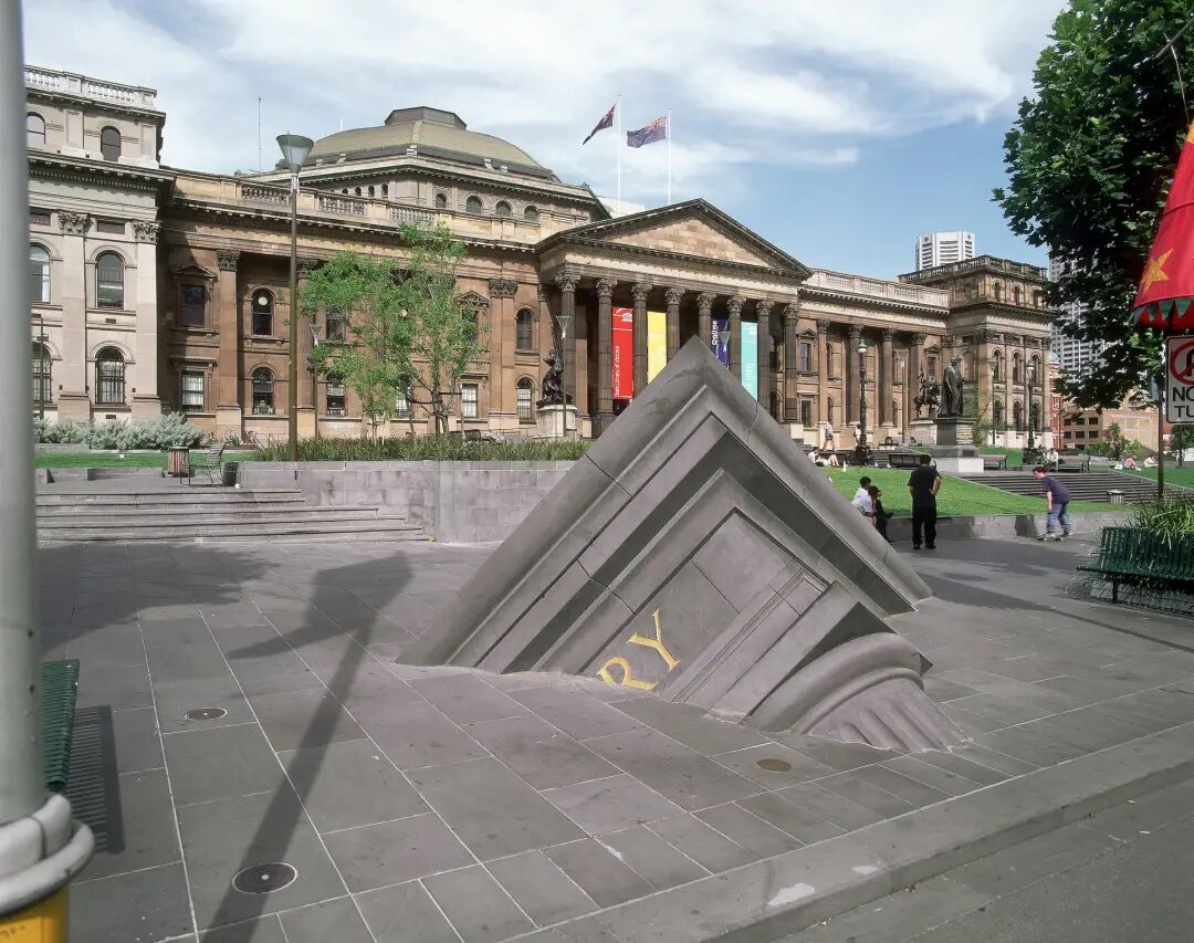 这座看似埋在地下的雕塑位于墨尔本,矗立在维多利亚州立图书馆前,它象征着文明的衰落,同时暗指当下的短暂。墨尔本于1992年委托这项工作,它也是一个更大的公共艺术项目的一部分。