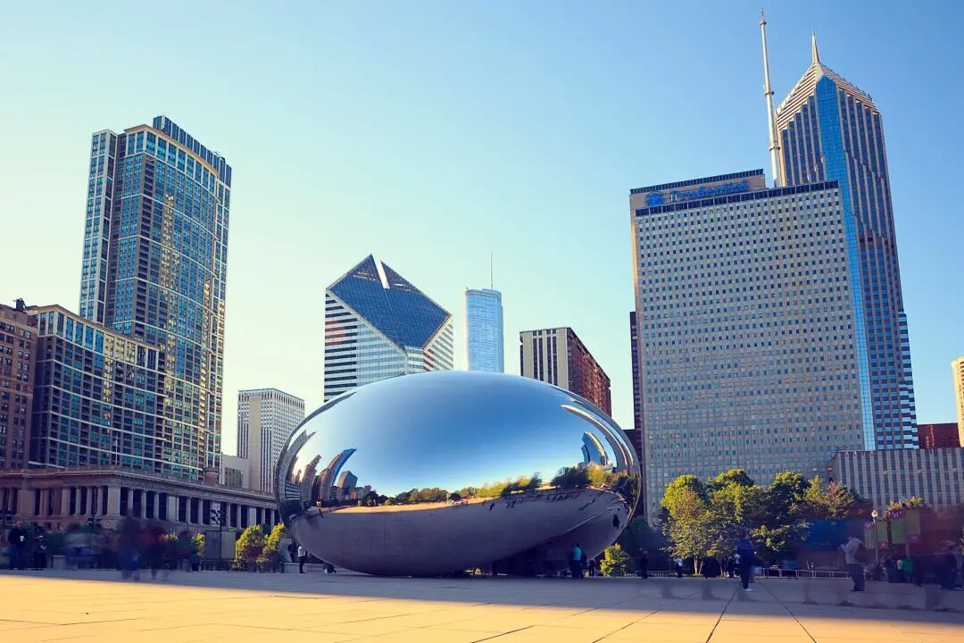 这座重达110吨的椭圆形雕塑位于千禧公园内,反映了芝加哥著名的天际线以及在3.6米高的拱门下行走的游客,雕塑的形态受液态汞的启发,长20米,高10米。