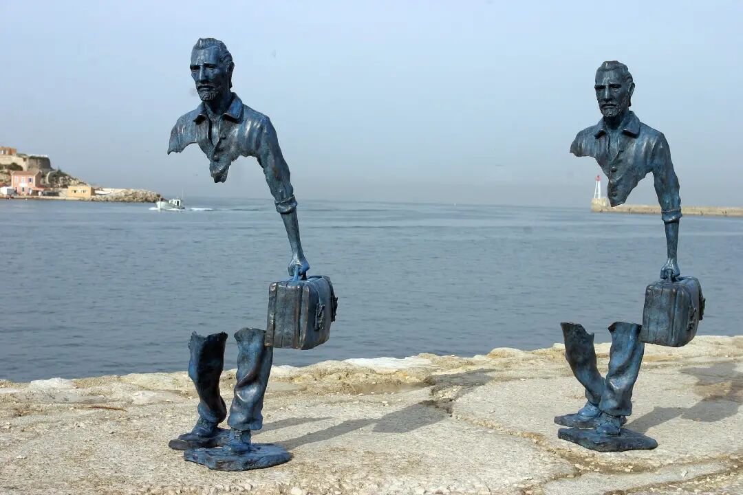 法国艺术家布鲁诺·卡塔拉诺在法国马赛创作的旅行者是一座神秘的雕塑,目的在于唤起每个旅行者在离家前往新海岸时不可避免地留下的记忆和自己的一部分。