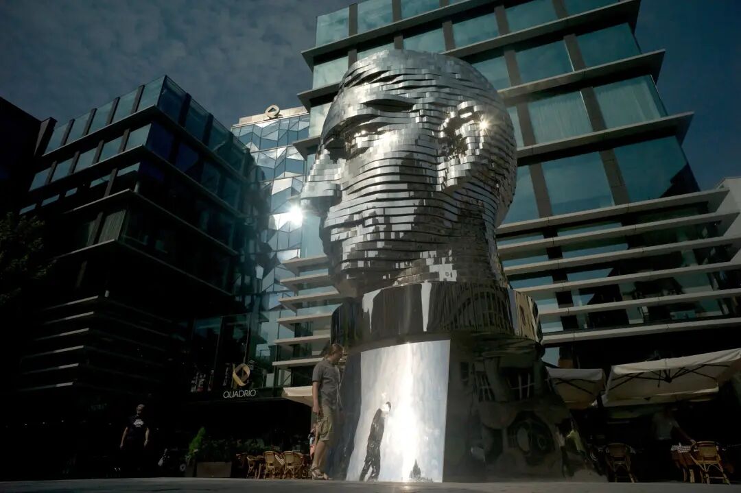 这座雕塑是捷克艺术家大卫·切尔尼创作的大型人体头部动力学作品,位于布拉格,建于2007年,由360度旋转的不锈钢层制成,在某些视角下会对齐形成一个巨大的头部。
