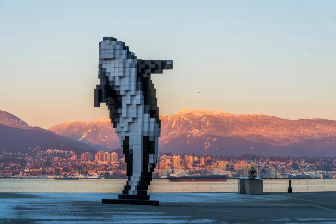 道格拉斯·库普兰的数这幅2009年的数字艺术作品既美丽又奇异,受温哥华市委托,可俯瞰海港和赛普拉斯省立公园的群山。这座雕塑由钢骨架、铝包层和黑白立方体组成,已吸引了无数游客和当地人的注意力。