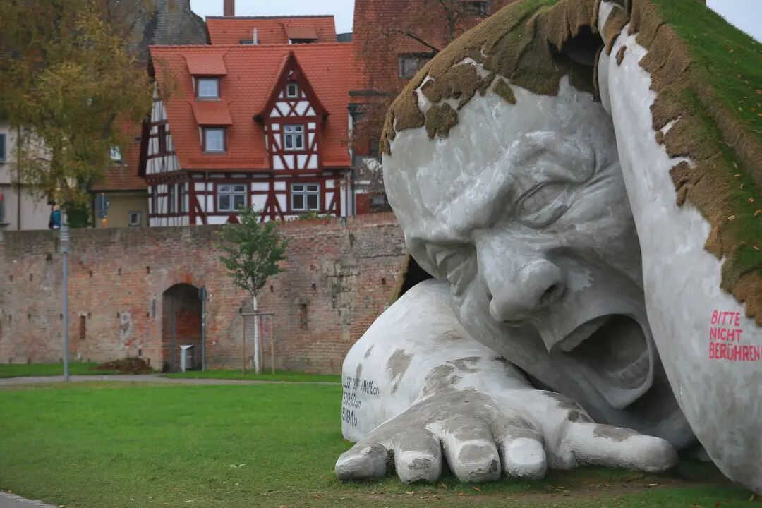 这座转头雕塑位于匈牙利布达佩斯的塞切尼广场,由才华横溢的艺术家欧文·洛兰思·赫维为2014年布达佩斯艺术市场国际当代艺术博览会创作,她将雕塑命名为“突然出现”,因为有一个男人从地下爬出来。