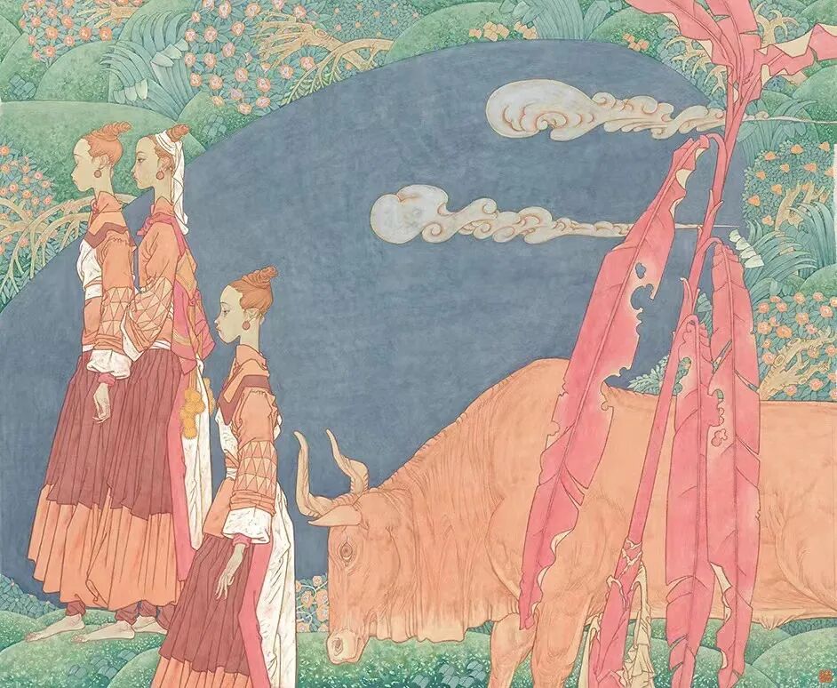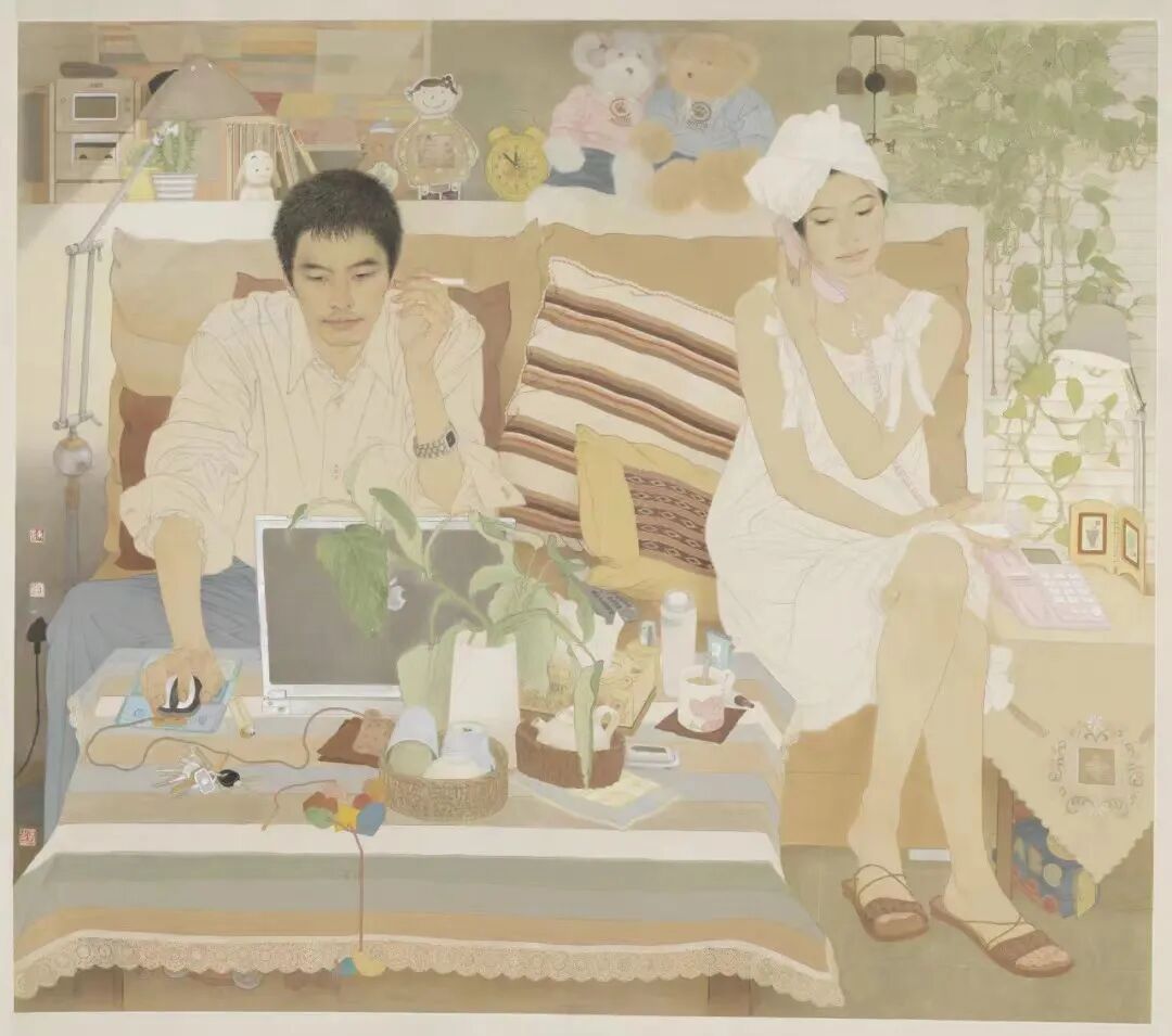 二、彰显时代文化张力。当代工笔画借鉴了西方绘画的色彩、造型等因素,更好地切入现实生活,表现艺术本体的生命进程和内心情感。今天的借鉴已有别于晚清后被动的“中西融合”,而是在保持民族性基础上的理性自信的选择。比如色彩表达方面,中国绘画自古即有“丹青”艺术的施色观念和方法。但就色彩的现代学而言,西方有牛顿《光谱学》、歌德《色彩学》为代表的对色彩的科学性研究,包括色彩生成的原理,色彩的冷暖关系及色调等,中国传统理论是没有涉及的,在这方面补益的结果,使工笔画形成了独步世界的、人类共享的、普世的审美。可以说全世界不同区域、民族的伟大艺术,总是在审美的深层次上通向人类。今天的中国工笔画无疑是具有这样品质的伟大艺术。
