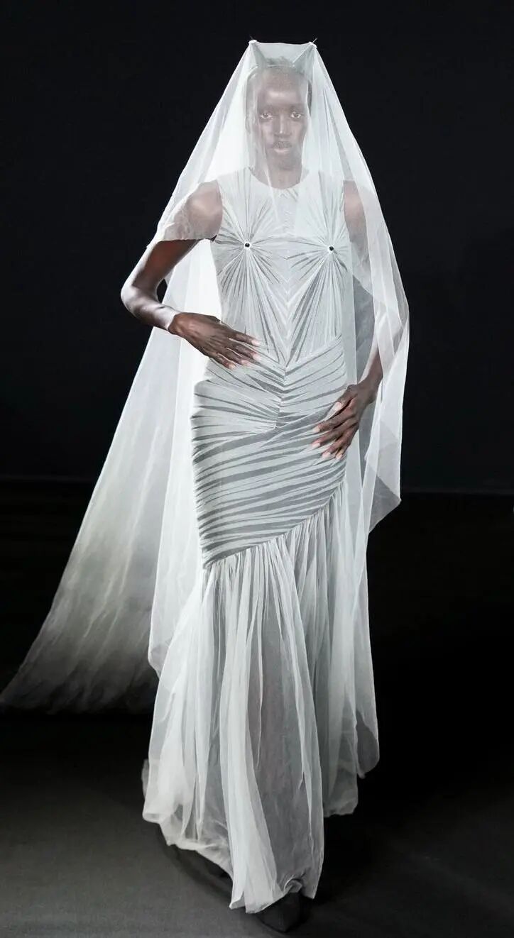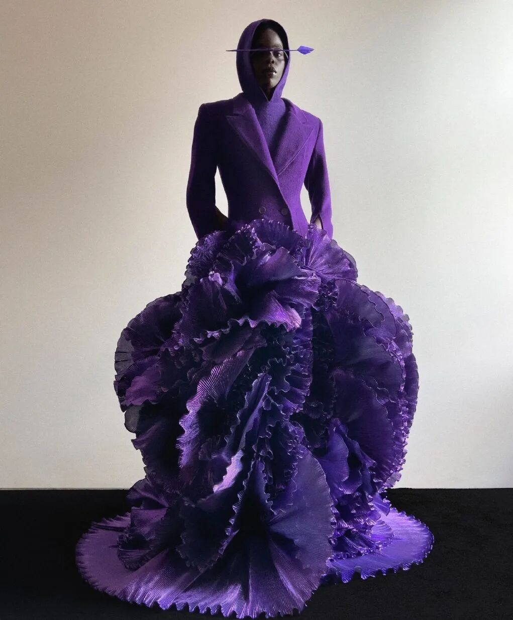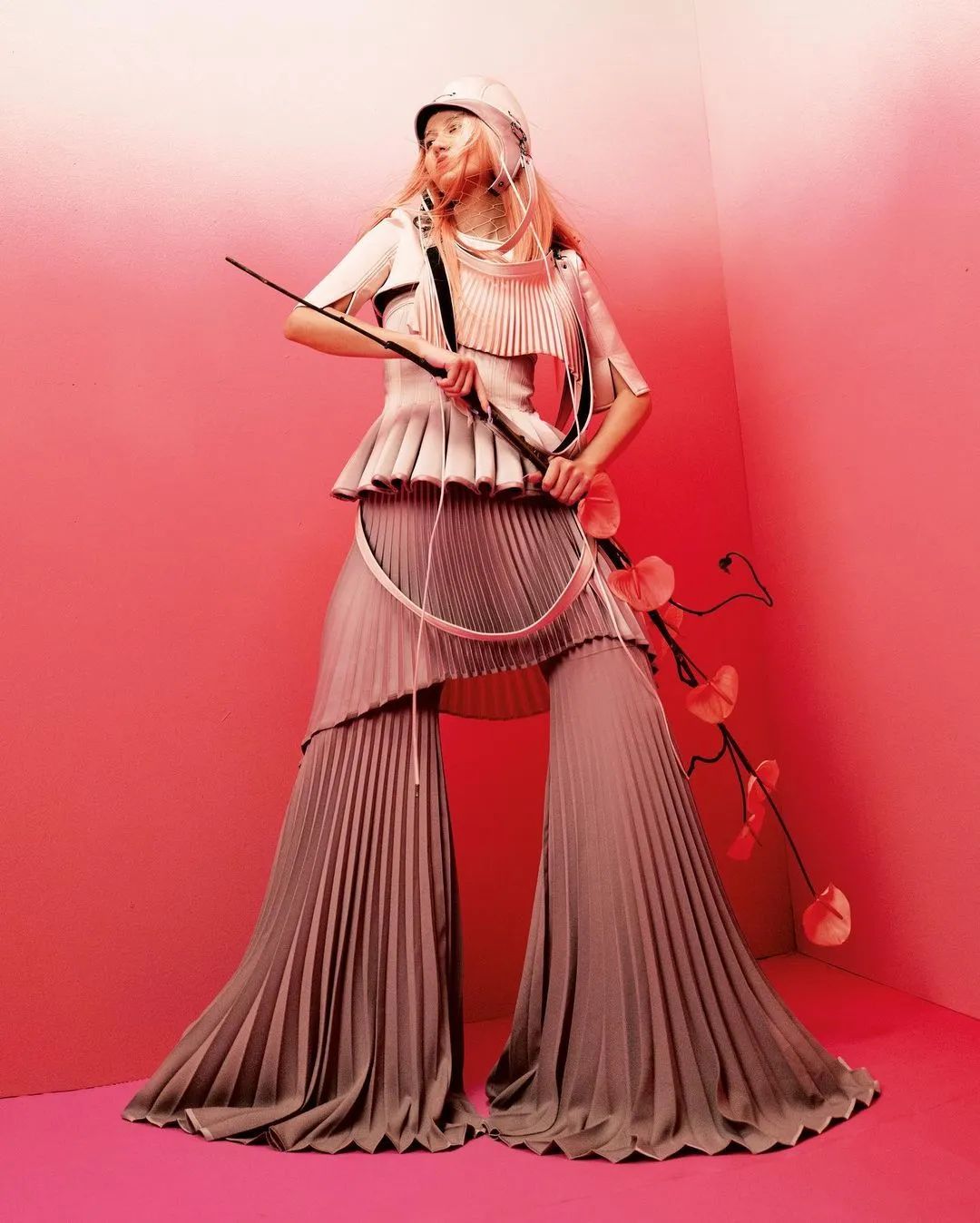 “这是关于我挑战的想法,设计的东西是如此珍贵,你非常害怕它会发生什么”,他说。“如果我们最害怕的东西- -就是灵感本身呢?与其把一个女人变成一朵美丽的花--这对我来说是一个非常古老的概念--如果她拥抱恐惧并被恐惧所赋予力量呢?对我来说,没有什么比这更美了。”