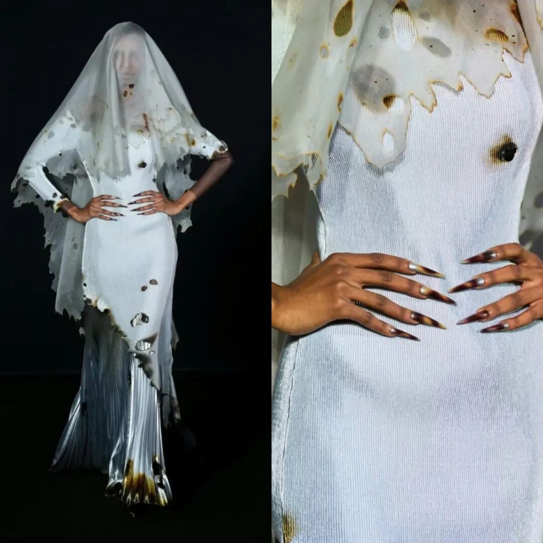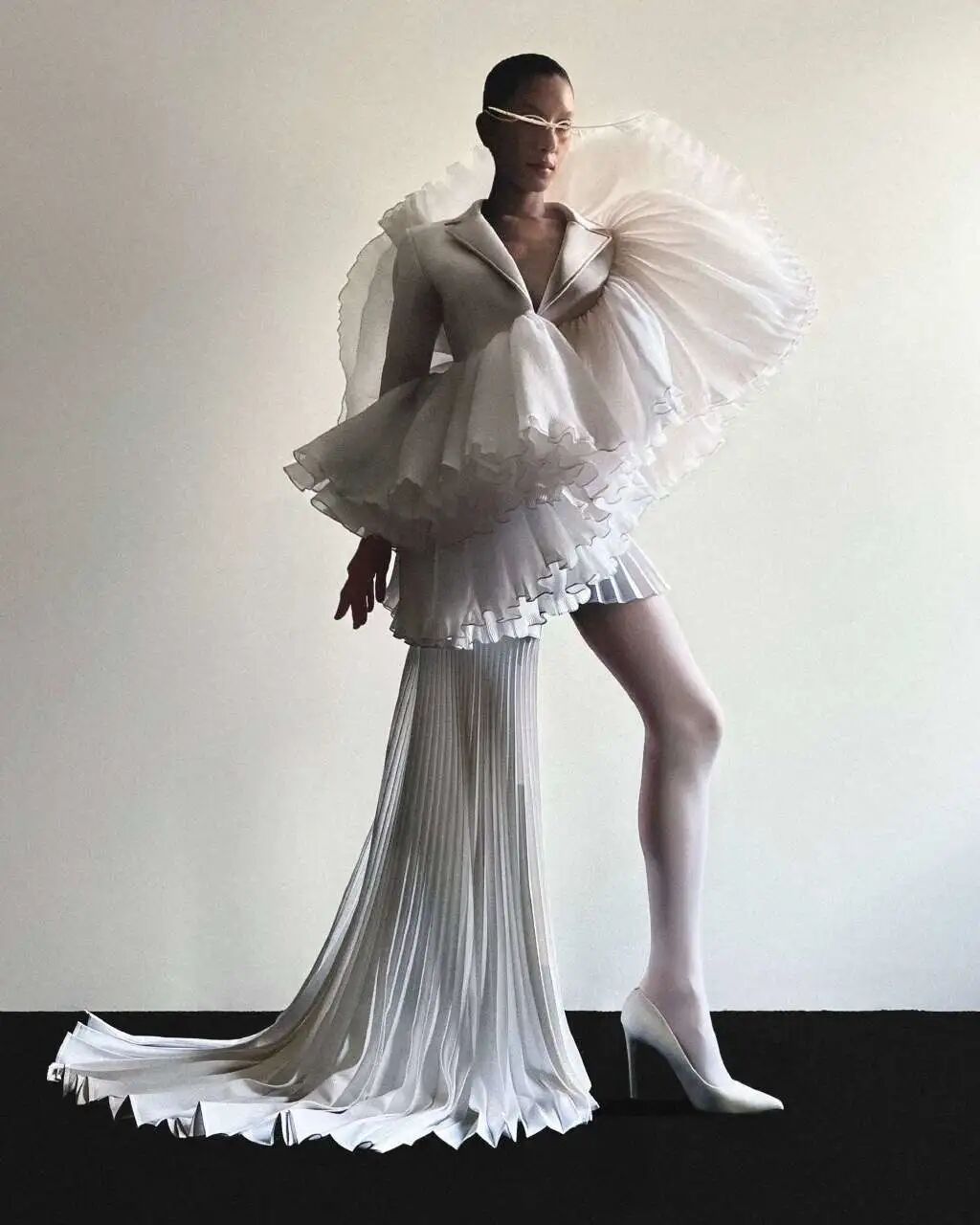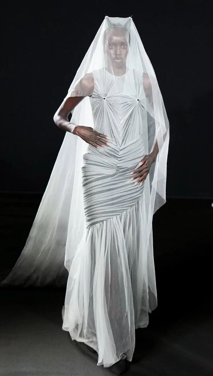 “这是关于我挑战的想法,设计的东西是如此珍贵,你非常害怕它会发生什么”,他说。“如果我们最害怕的东西- -就是灵感本身呢?与其把一个女人变成一朵美丽的花--这对我来说是一个非常古老的概念--如果她拥抱恐惧并被恐惧所赋予力量呢?对我来说,没有什么比这更美了。”