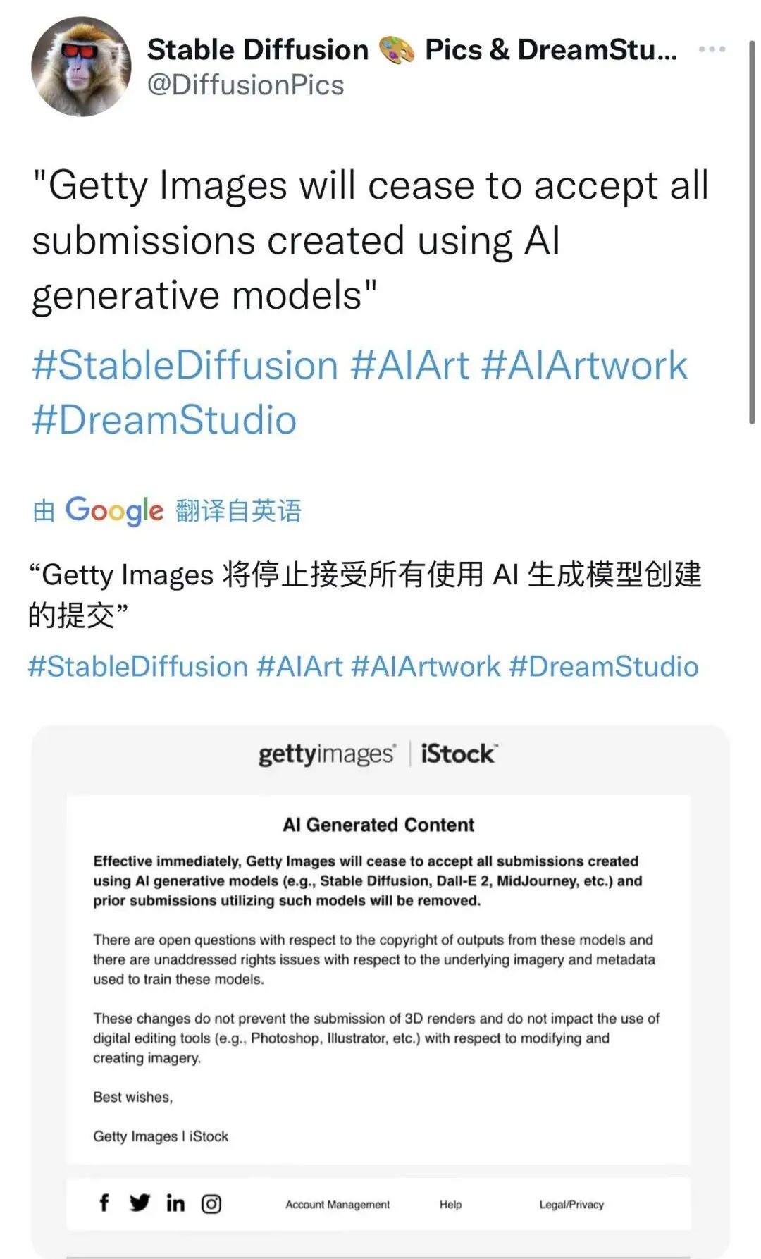 作为国外知名大型图库 Getty Images 在近日宣布禁止用户上传和销售使用 AI生成图片,其中包括但不限于 DALL-E、Midjourney 和 Stable Diffusion 等生成的插画图像,网站内存有的 AI 图像也将会被删除。