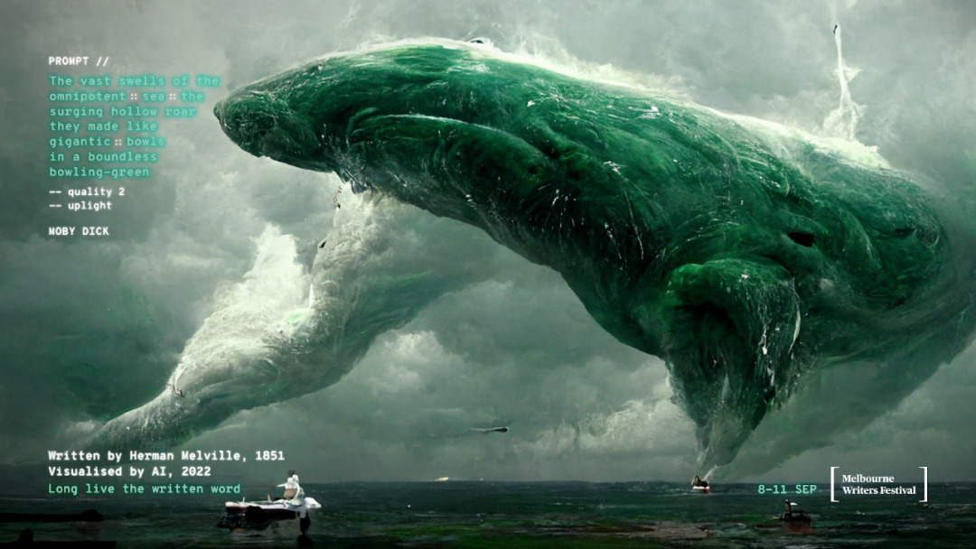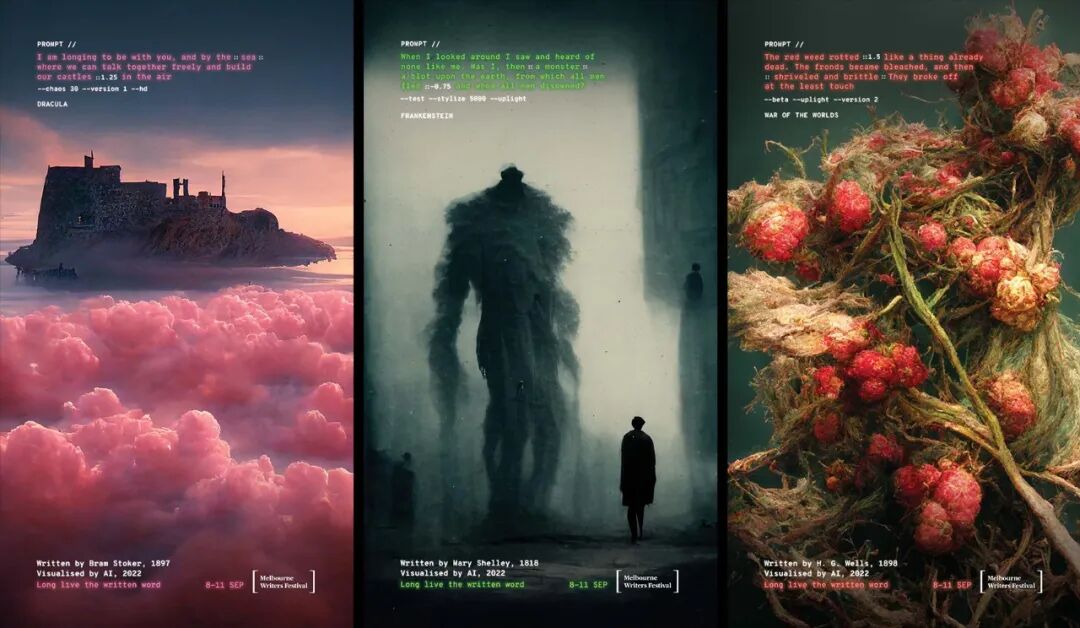 ▲The Melbourne Writers Festival(墨尔本作家节)与广告公司TBWA墨尔本合作推出了一组由人工智能(AI)自动生成的海报