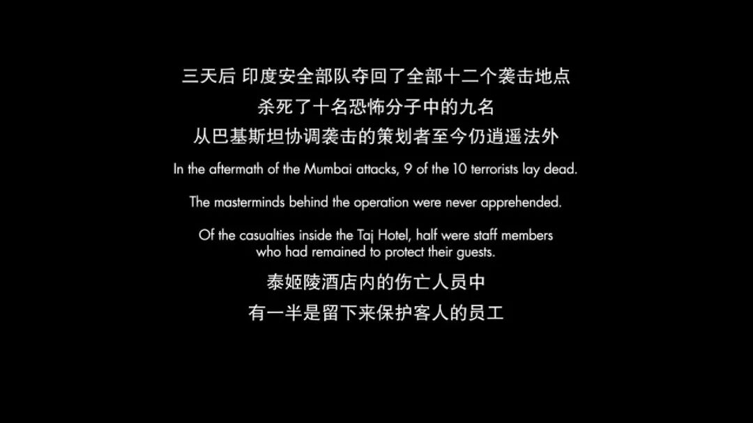 来看看另一间有Taj酒店的电影,而且是在Taj的旗舰之一——孟买Taj Mahal Palace。不过真的太太太悲壮了,没有足够的心理建设别轻易看此片,但影片无论表演、立意、制作都是绝对优异的!