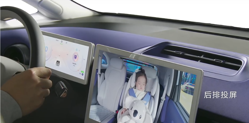另外考拉有一个功能我估计在家长孤身一人带孩子出门的时候会使用率极高:一键投屏查看后排儿童状态。摄像头会精准朝向后排左侧儿童,避免驾驶员因回头可能造成的事故和危险。毕竟家长很难放心宝宝不在自己的视野范围里。