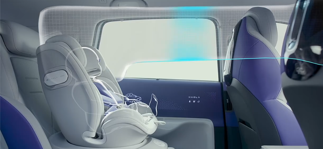 对一台智能亲子车的考察得从上车前就开始:走到考拉这台车旁,脚踩地面的考拉妈妈怀抱宝宝图案,这时候侧滑车门会自动开启,儿童座椅自动转向右侧滑门方向,方便妈妈抱着孩子入座。下车关门,儿童座椅自动复位。