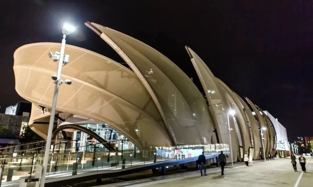 柔性织物材料可100%回收再利用,与传统幕墙相比更节能环保。