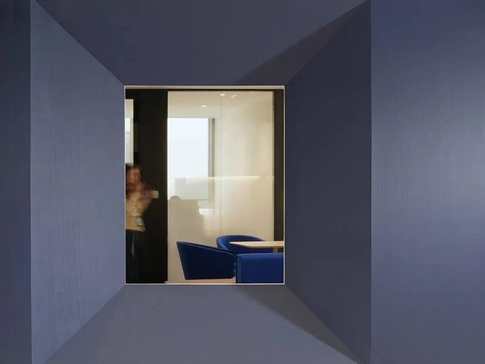 为助力一种促进交流的企业文化,设计师在接待区墙面设计了一个视窗,使访客可以第一时间感受到公司的氛围与活力,使外出的员工回到公司像回家一样安心。