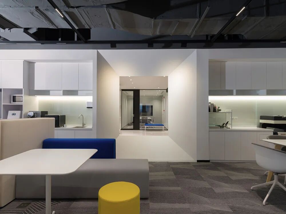 空间布局有开放式区域的同时也有焦点区域,有会议室,有独立工作房间,还有高私密级别的洽谈室和视频会议室,支持专注工作、协作、学习、社交以及恢复活力。从而使办公室成为从宏观上支持员工身心健康,同时满足个人心理、认知以及身体层面需求的空间;成为让大家聚在一起、感受到彼此,能建立起共同目标的生态空间。