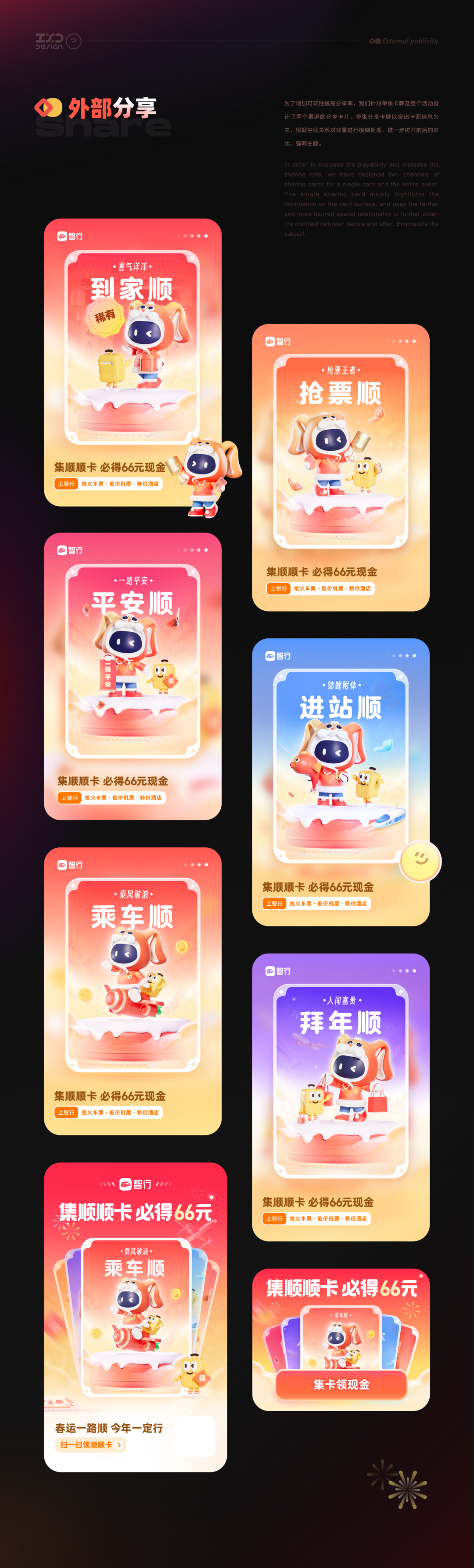 小智IP与不同出行场景的结合与运用,把智能、高效、年轻、活力的智行品牌形象传达得更加立体与全面;同时,不断加强与知名品牌的合作与交流,深入挖掘小智IP的多样性与可能性,极大地提高了小智IP的品牌曝光,获得了大批用户的喜爱与认可。