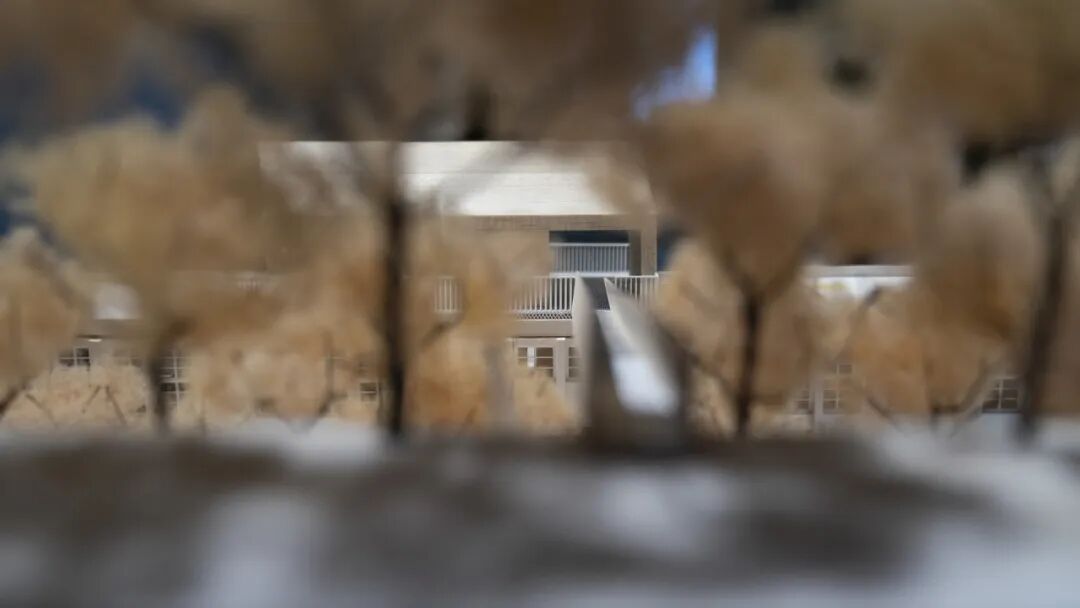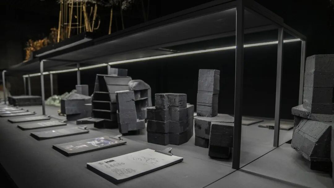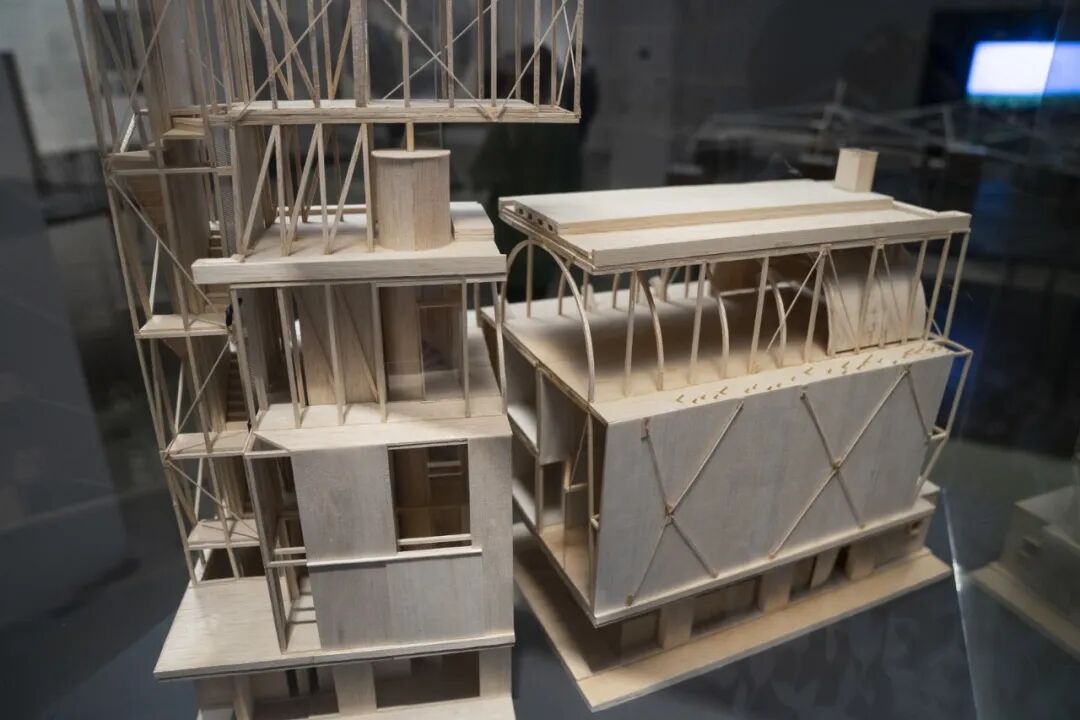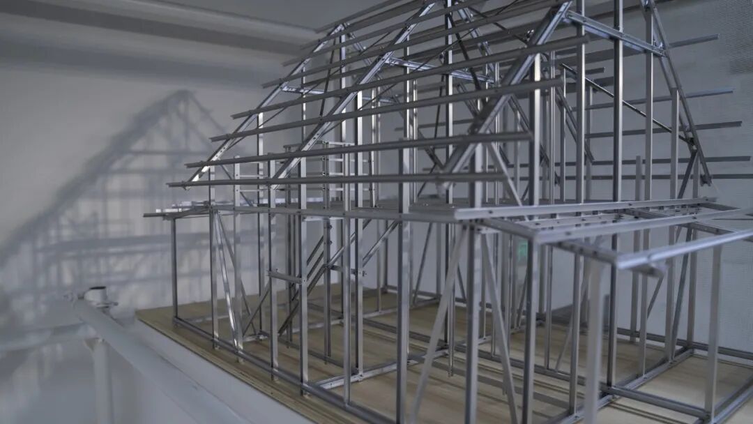 这是谢英俊的第一个展厅,中间还原了他某个建筑的轻钢结构。