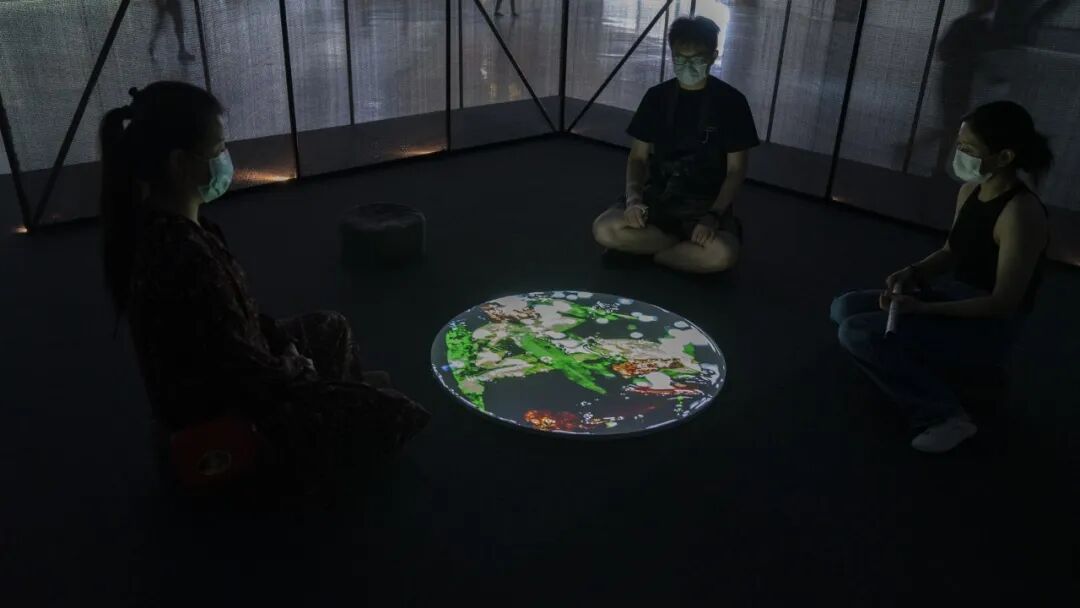 还没进门,门口就是一个冥想室,放着奇幻的音乐。这是第一个工作室的展——自然洋行。从名字大概也能猜出,这个工作室关注的是跟自然和宇宙的关系。