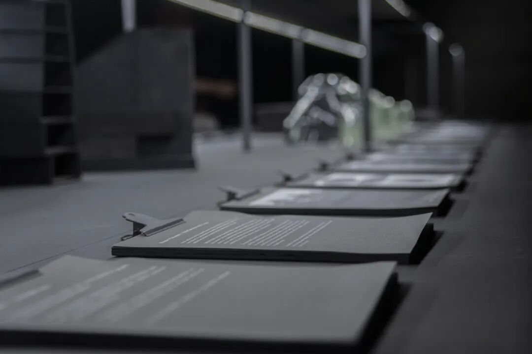 一排整齐的介绍,其实就是一页页的文字介绍,可以在下面垫了垫板,增加了厚度,夹上黑色的小夹子显得很有质感。