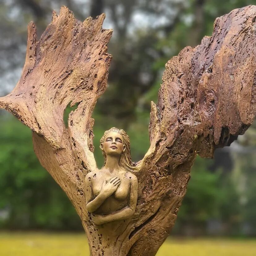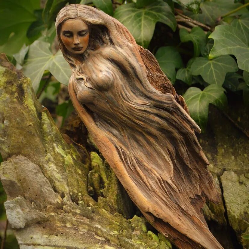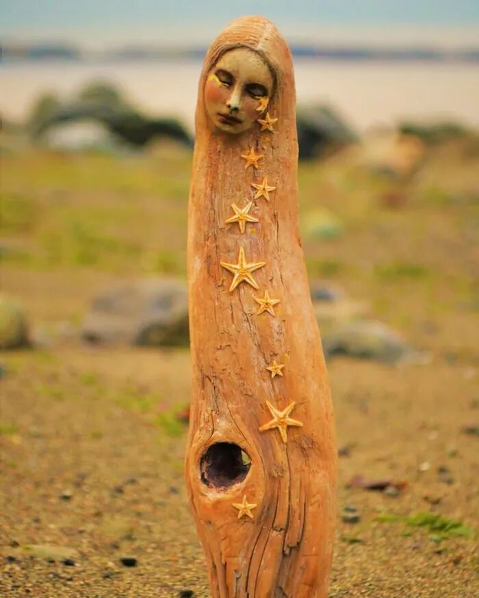 Debra Bernier受大自然的启发,以浮木和贝壳做为材料,结合黏土制作出一座座神秘的雕塑。她仿佛赋予了这些雕塑生命,代表着人与自然的结合,而作品中的女性大多数以一种光辉的圣母形象出现,散发出独特的魅力,象征着永恒的神圣。