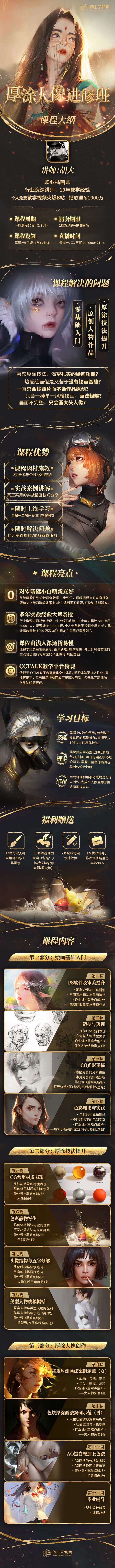 本套厚涂技法课程,是由行业 十年资深绘画讲师:胡大 亲自授课。是从零基础小白入门到专业画师的必修课。课程由浅入深,内容丰富,从软件操作到造型训练,素描光影,再到色彩理论、原创实践。举一反三的教学,每节课90分钟理论+实践讲解,让你快速充分掌握课堂上讲的专业知识,再到实践中套用学以致用