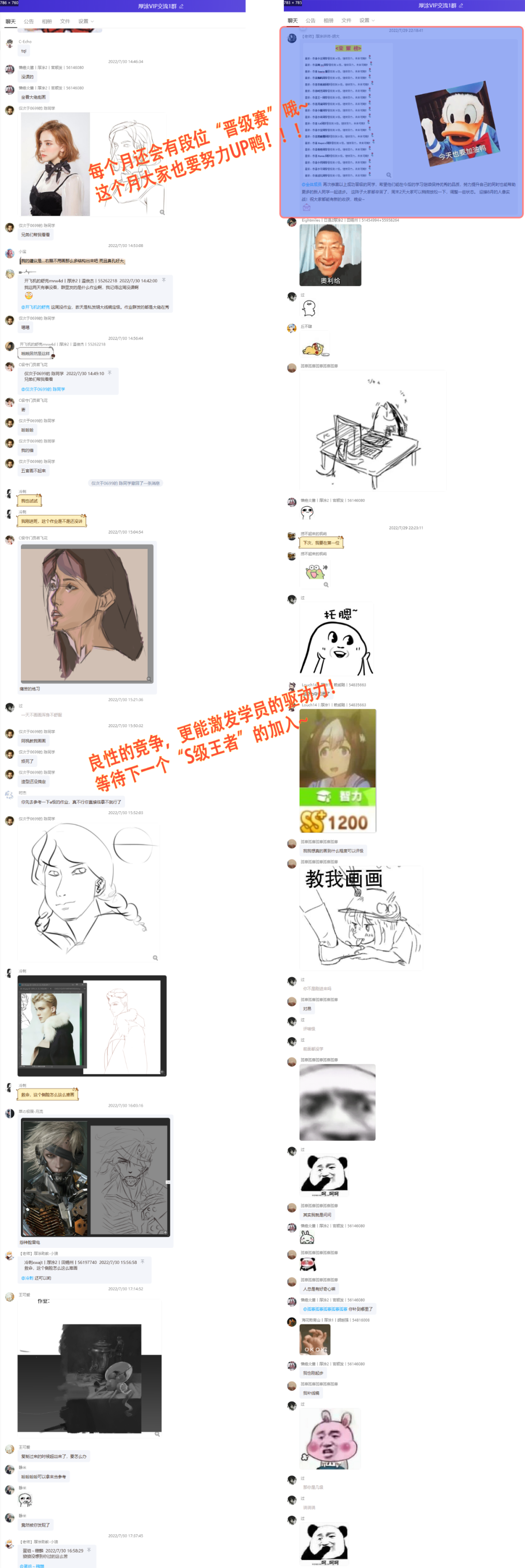 每个课程小结后,会有相对应的知识点的考核作业,作业会通过关卡的形式设置,就跟打弹戏过关一样,通过后才能进入到下一阶段,并且解锁新的课程权限。这样一来,想不画作业都很难了,赖癌什么的都去闯关刷副本吧! ! !当然了,萌新们不用太”担心自己一直过不了,在你阅关的同时,可以求助我们的助教老师做作业辅导。