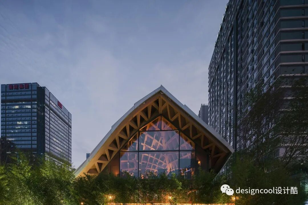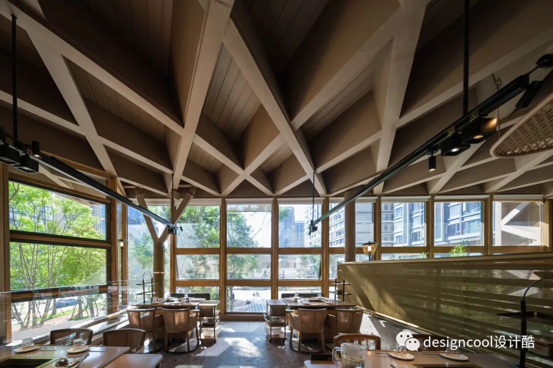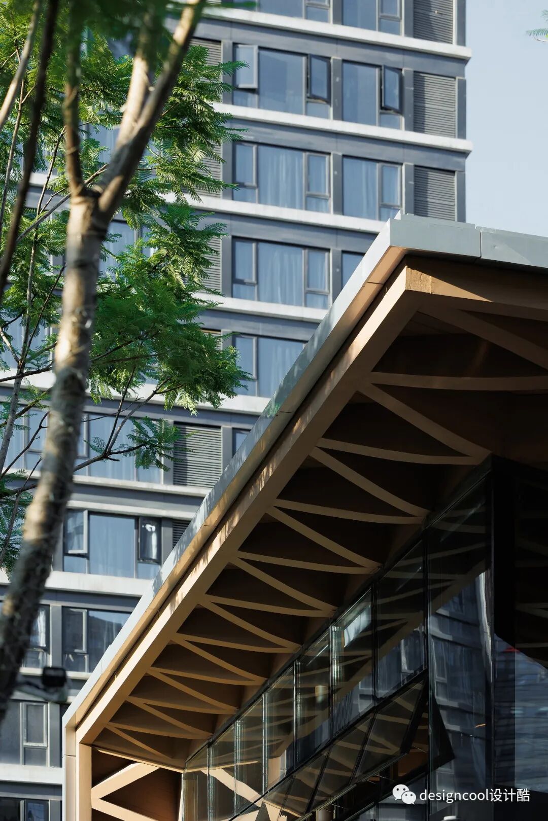 △屋檐处裸露的木结构与曲折的玻璃幕墙©虚服摄影