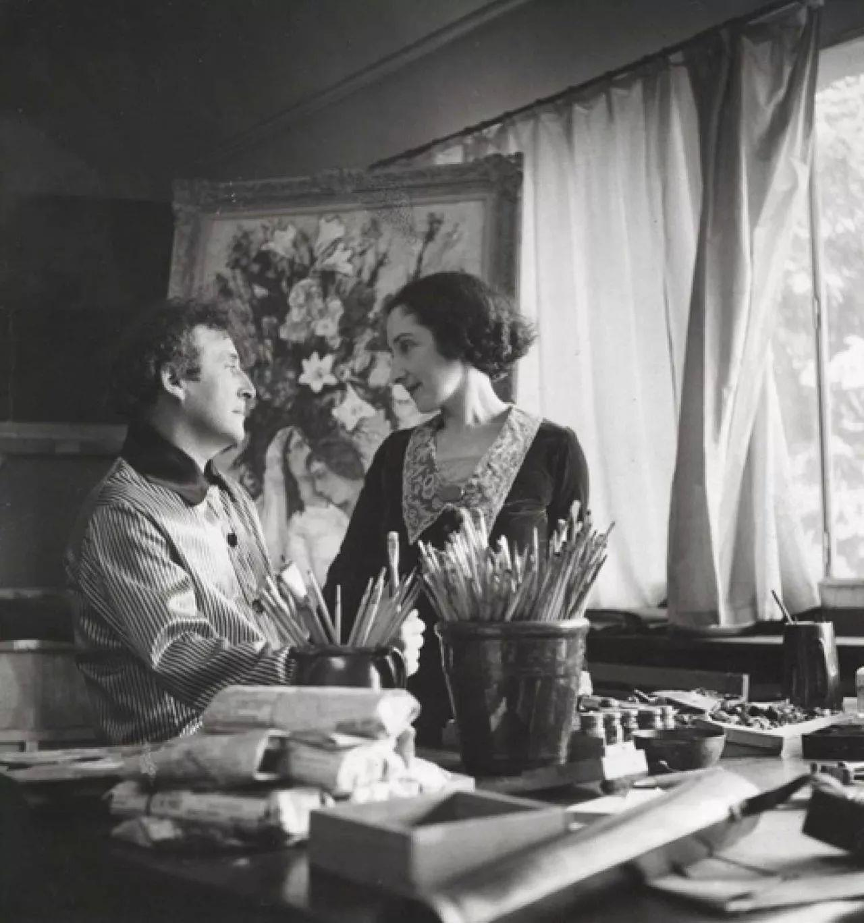 当时她像居里夫人般一周要工作60个小时,对结婚毫不在意。两个星期后她接连看了我好多幅画,我就把她追到手了。”