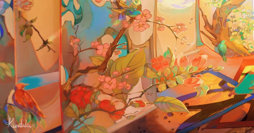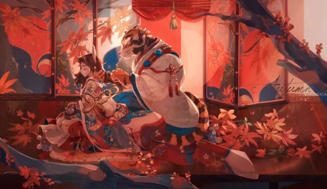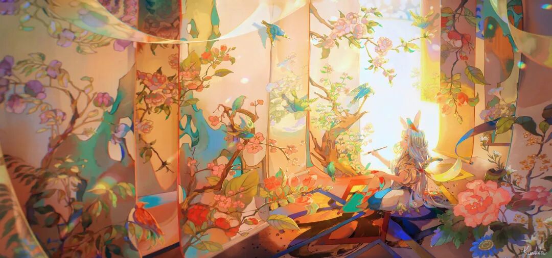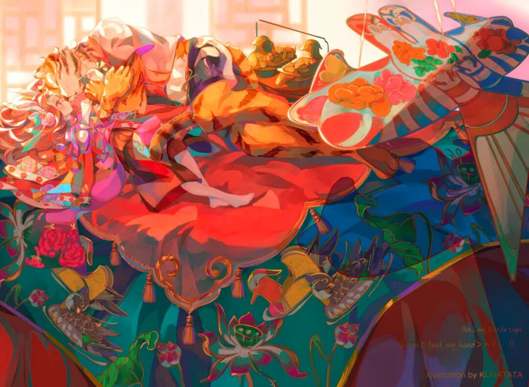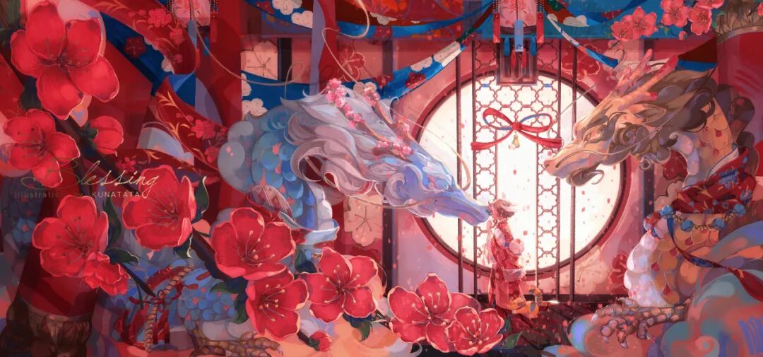 KUNATATA目前正在专注做一些中国传统文化宣传方面的插画尝试,在画作中将中式古典和西式梦幻结合在一起,各种元素融合得恰到好处。