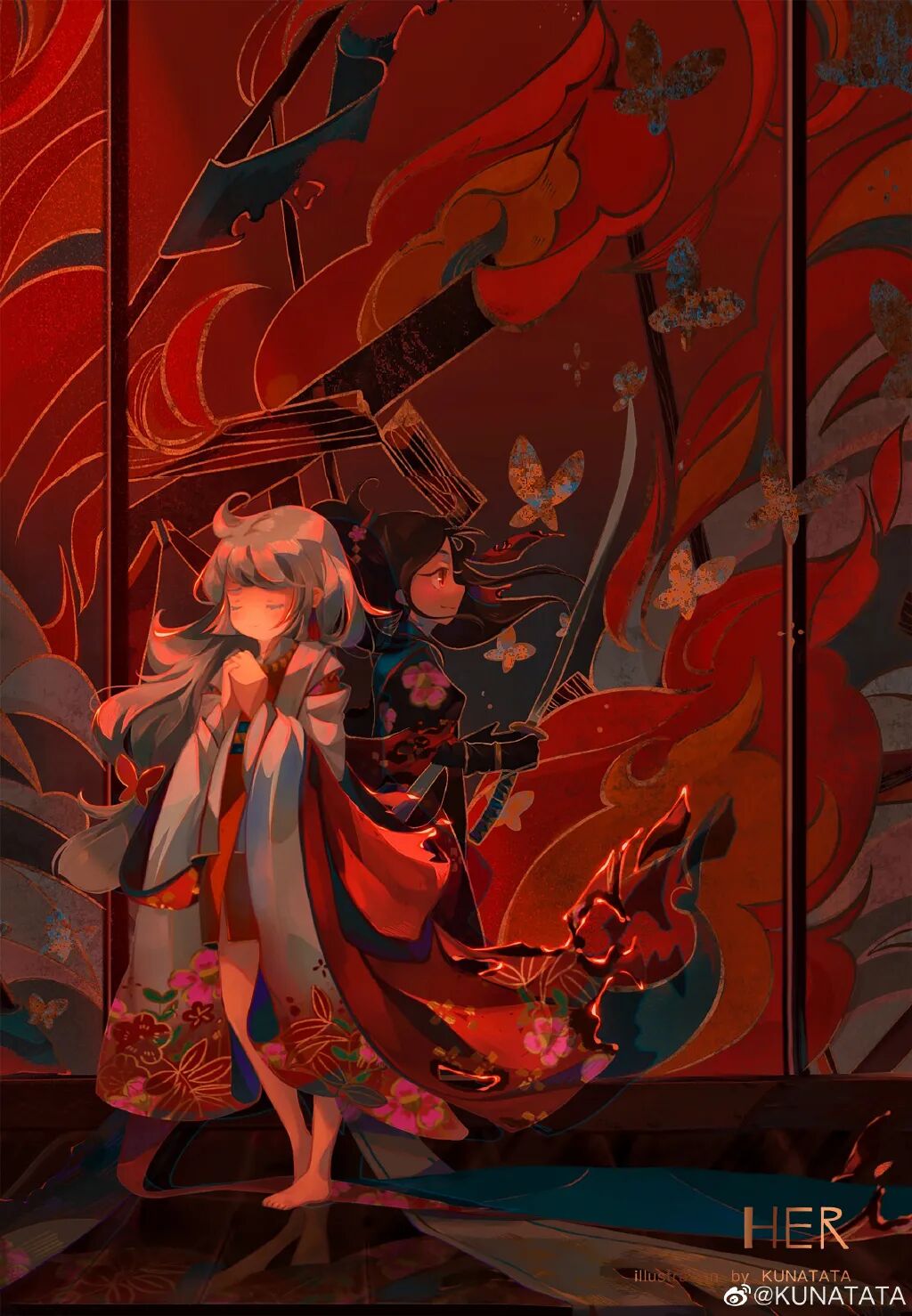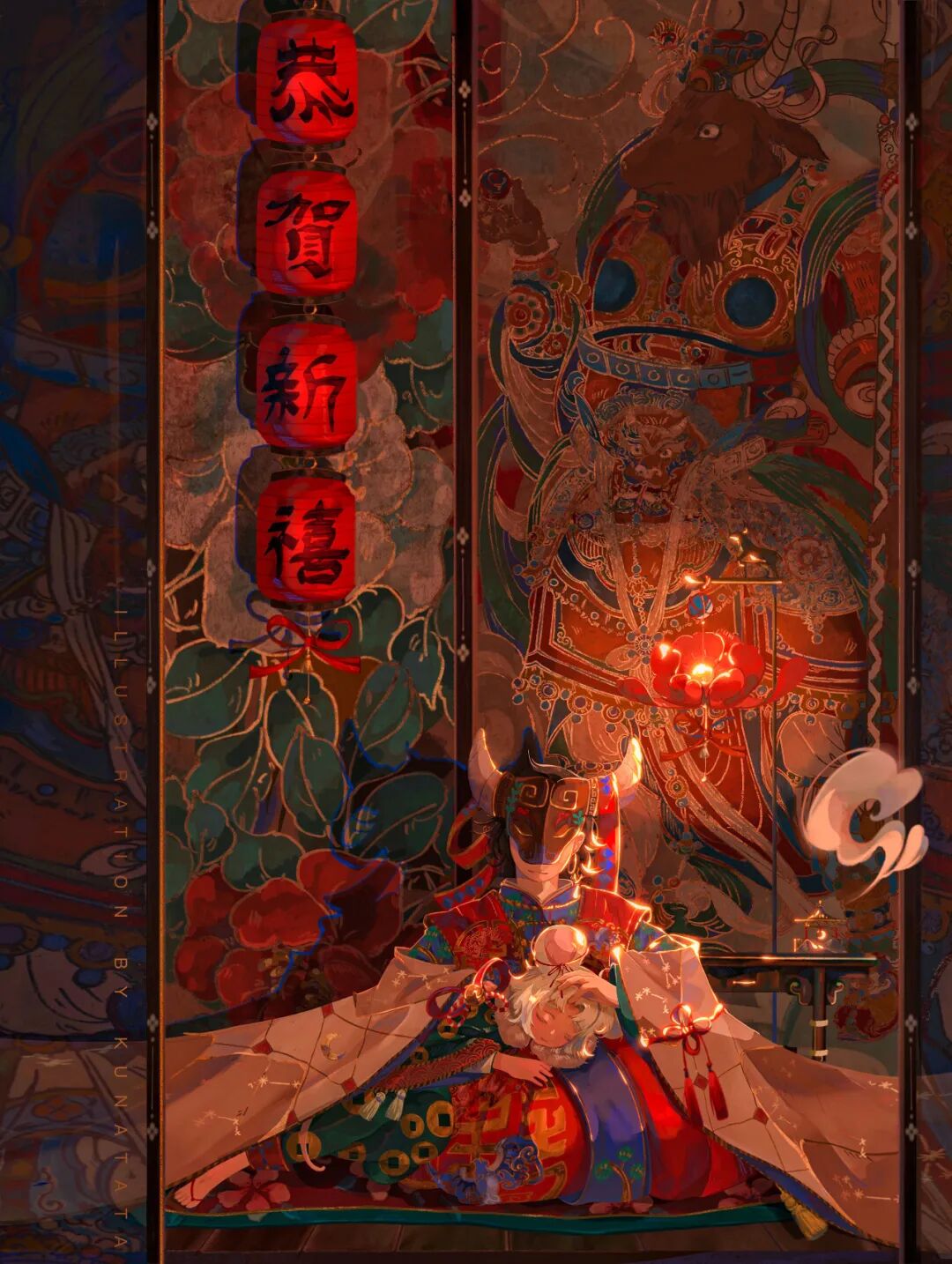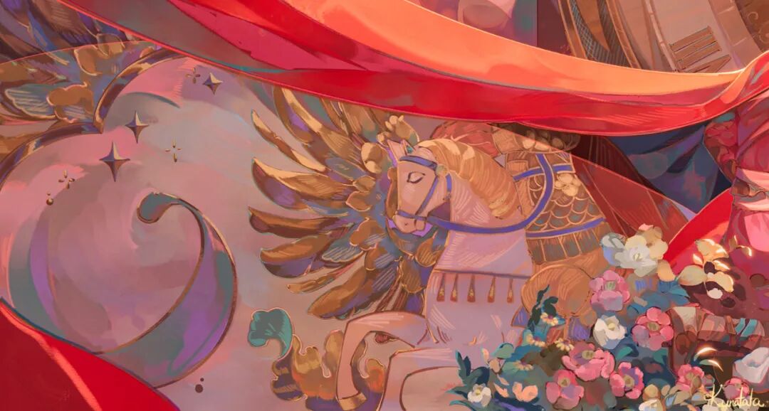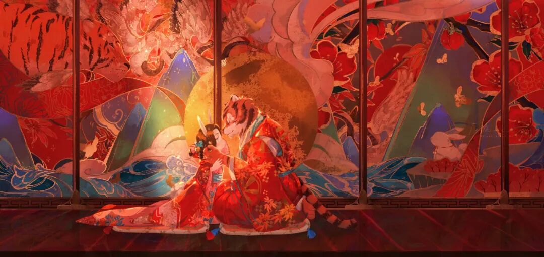 KUNATATA目前正在专注做一些中国传统文化宣传方面的插画尝试,在画作中将中式古典和西式梦幻结合在一起,各种元素融合得恰到好处。