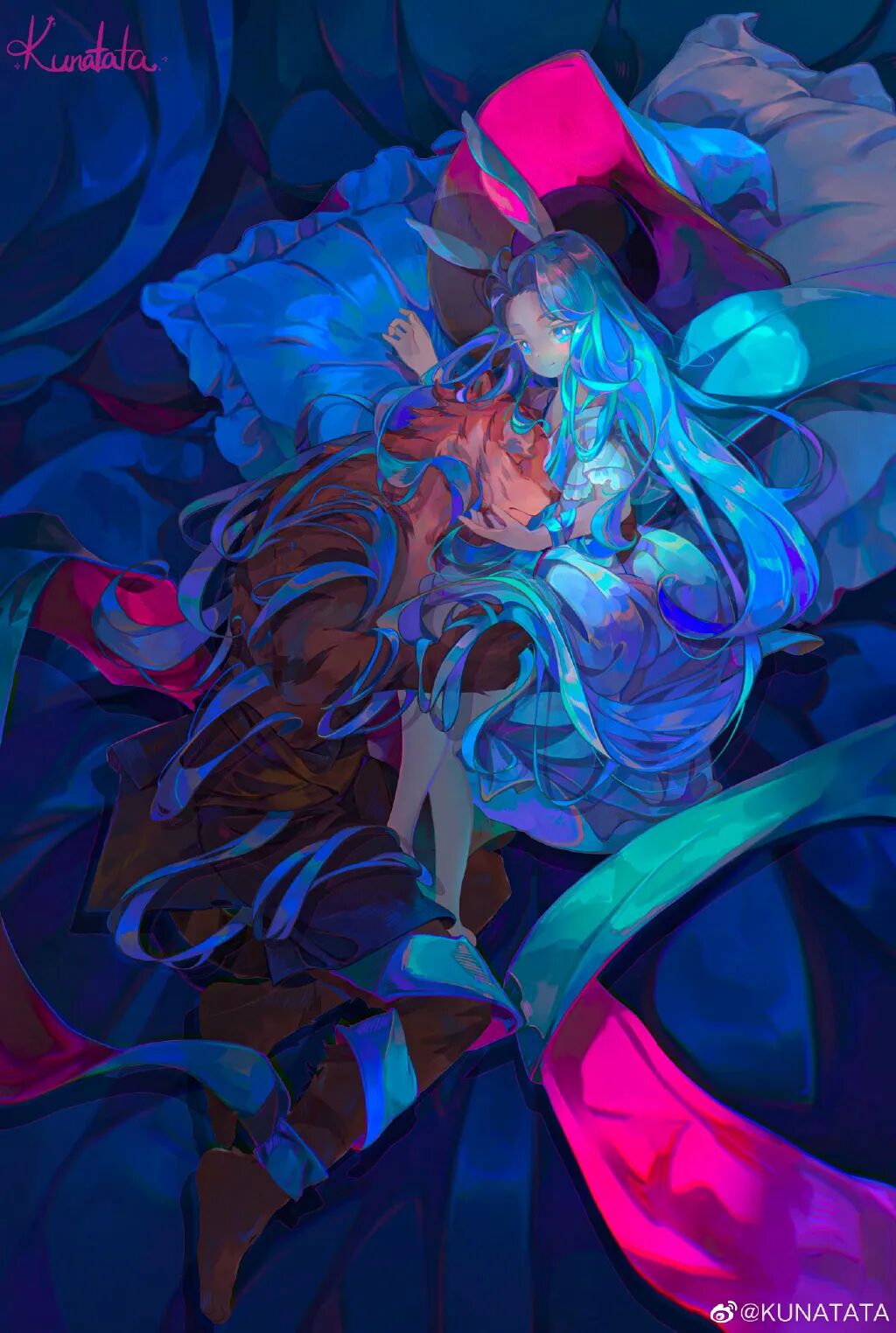 KUNATATA对于色彩的应用和表达也同样令人惊叹,她善于处理色调冷暖和捕捉画面情绪,同样的色彩在她手里可以沉静也可以飞扬,可以复古也可以清新。她的作品色调明快,华丽细腻,浪漫大气…… 就像置身于梦幻的童话世界。