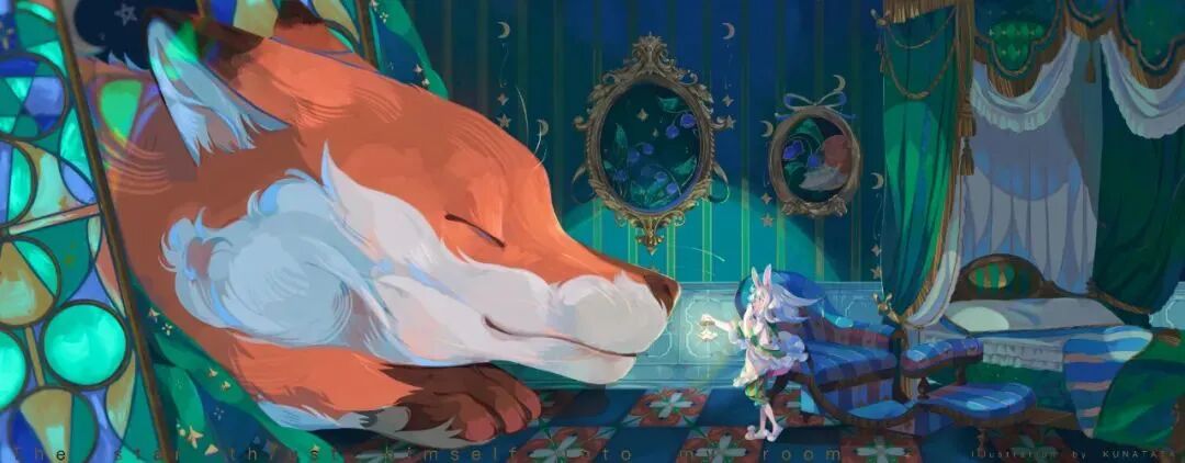 同时KUNATATA很喜欢小动物,家里养了一只狗和三只猫,每天都很热闹,所以她希望把小动物的元素放进去。关于“furry控”, 其实在KUNATATA认为,这只是一个大家对这类画面的统称,每个画家应该都会对他的画面有不同的理解。