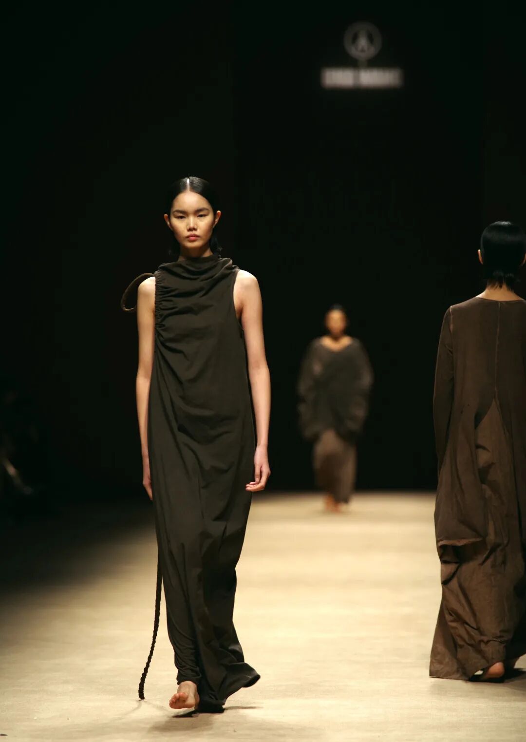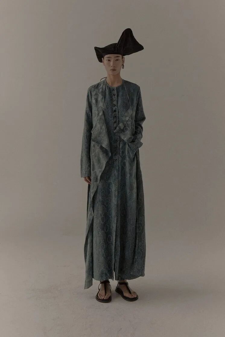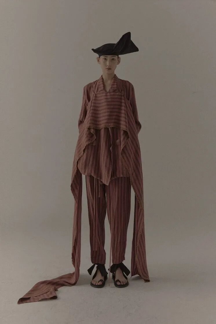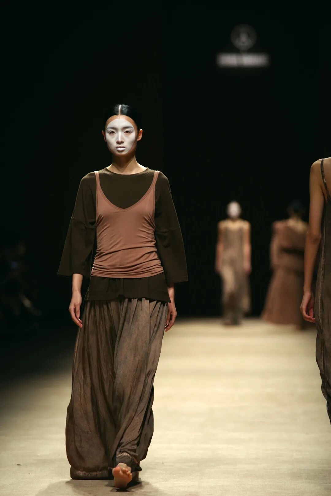 糅合了古典美学潇洒飘逸的“诗意时装”,道骨仙风的气质自然展露,延续了独特的面料处理水平以及富有诗意的剪裁与廓形,对面料的质感探索执着。