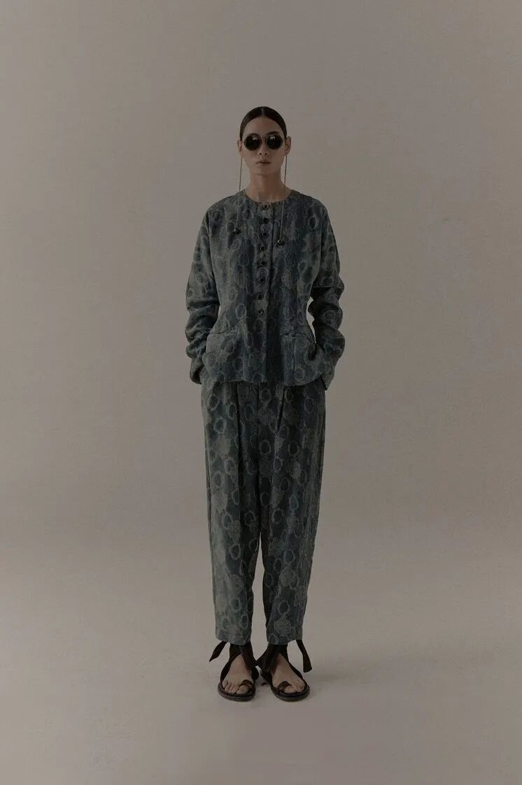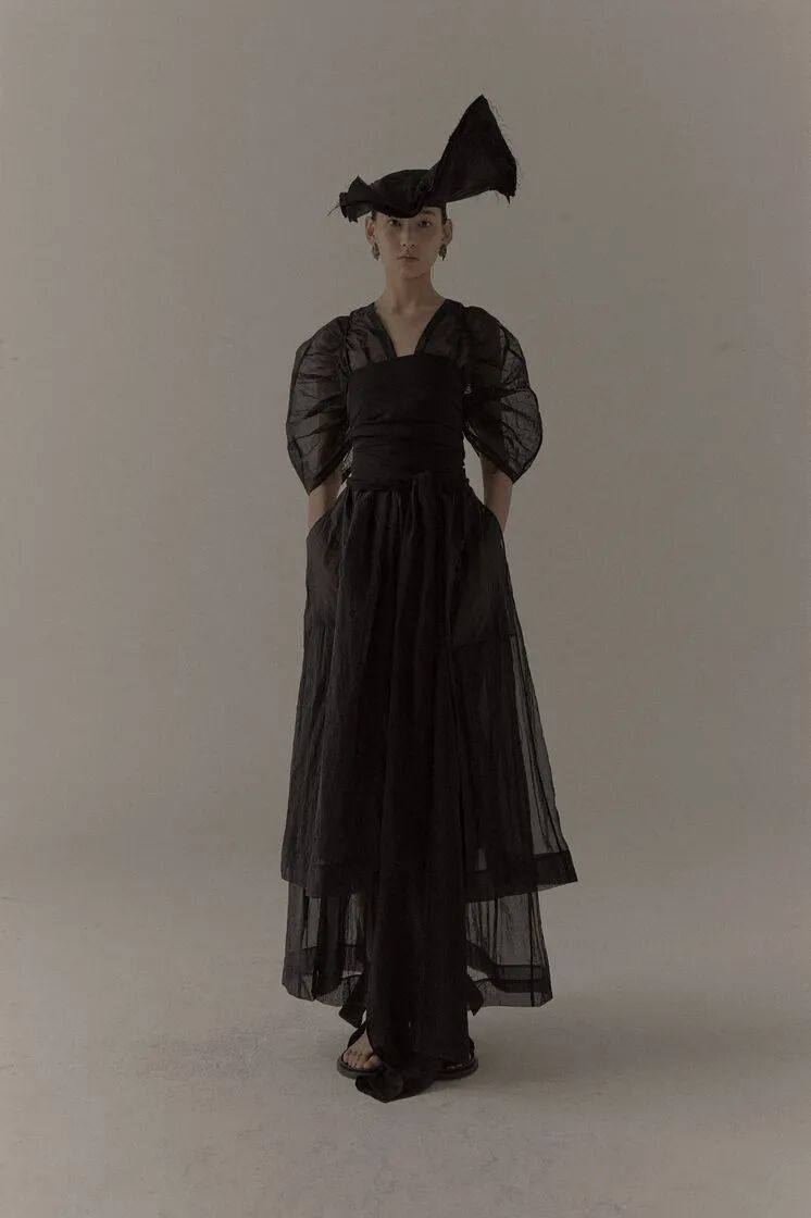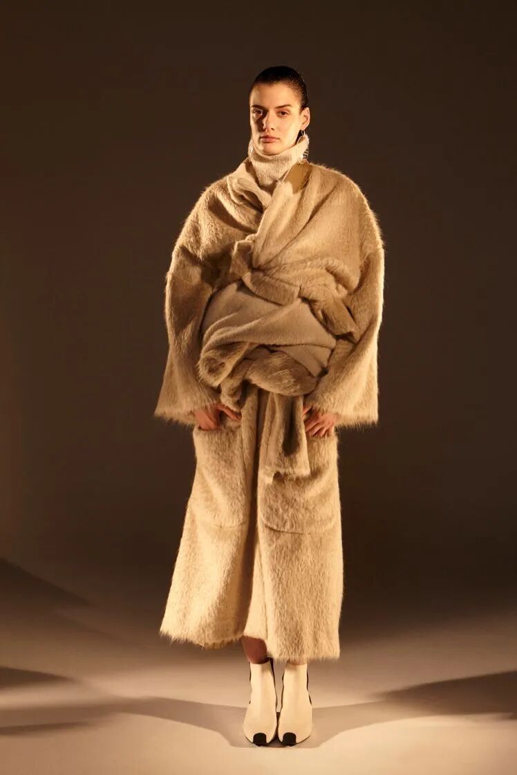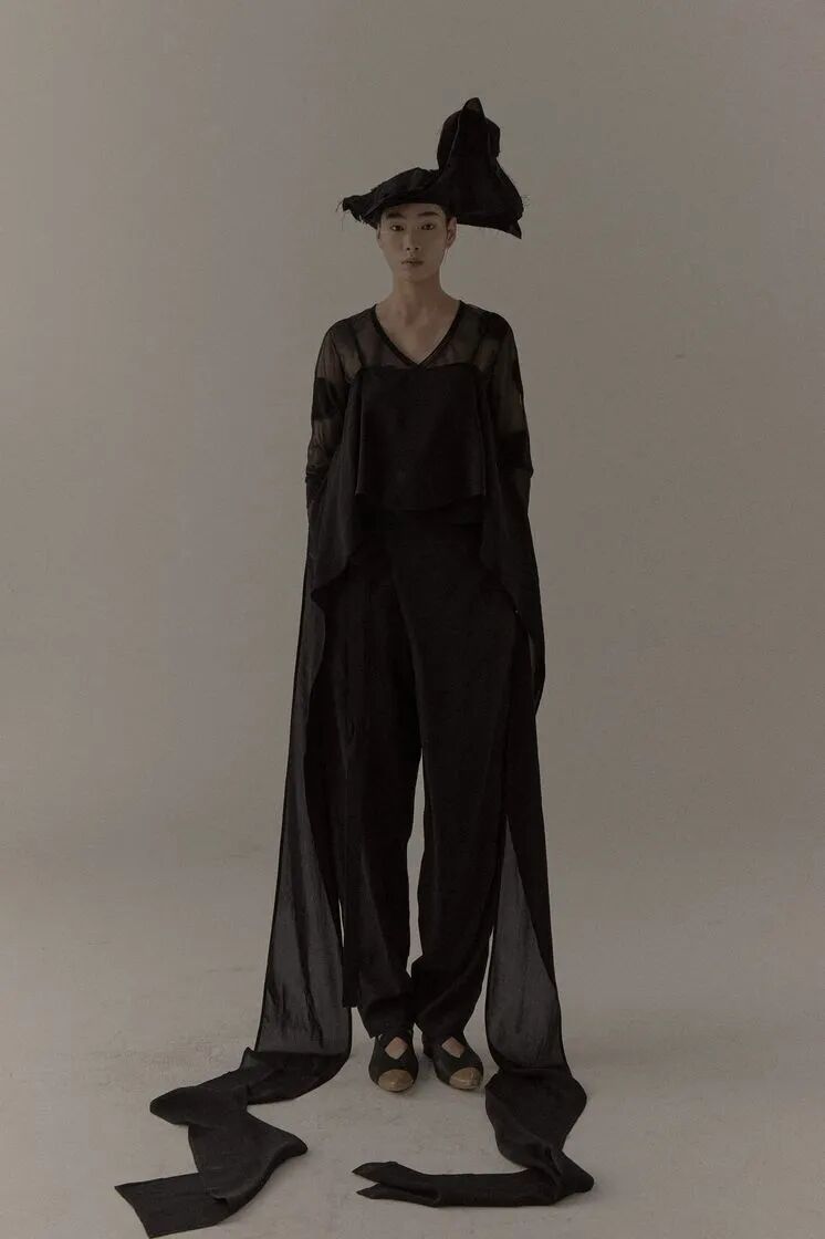 糅合了古典美学潇洒飘逸的“诗意时装”,道骨仙风的气质自然展露,延续了独特的面料处理水平以及富有诗意的剪裁与廓形,对面料的质感探索执着。