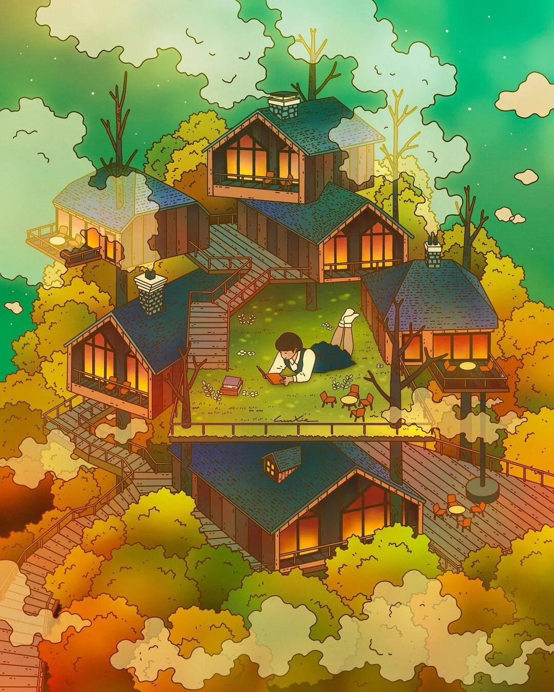 童话故事里的场景插画,一张画几乎可以讲述了一个故事