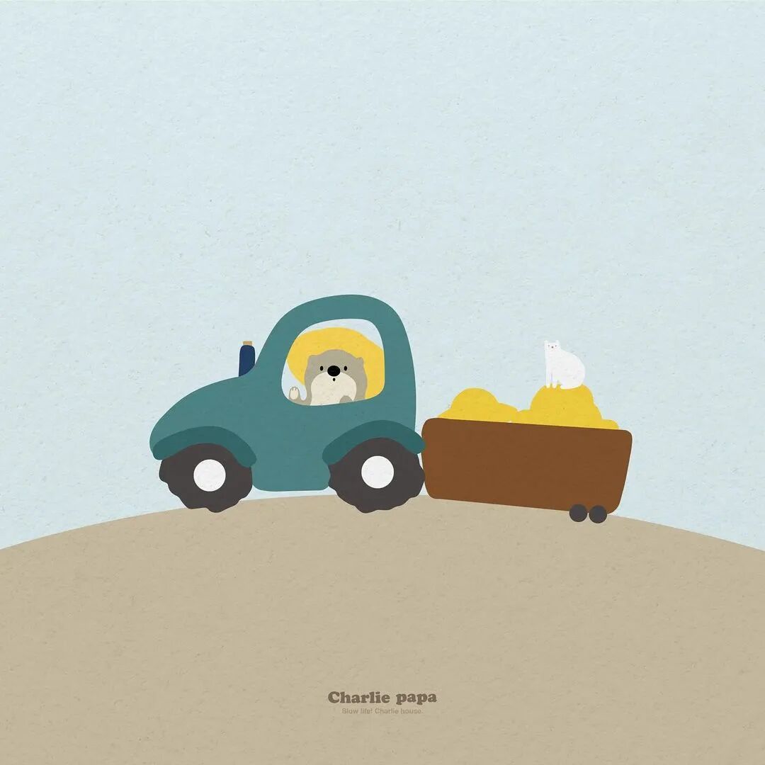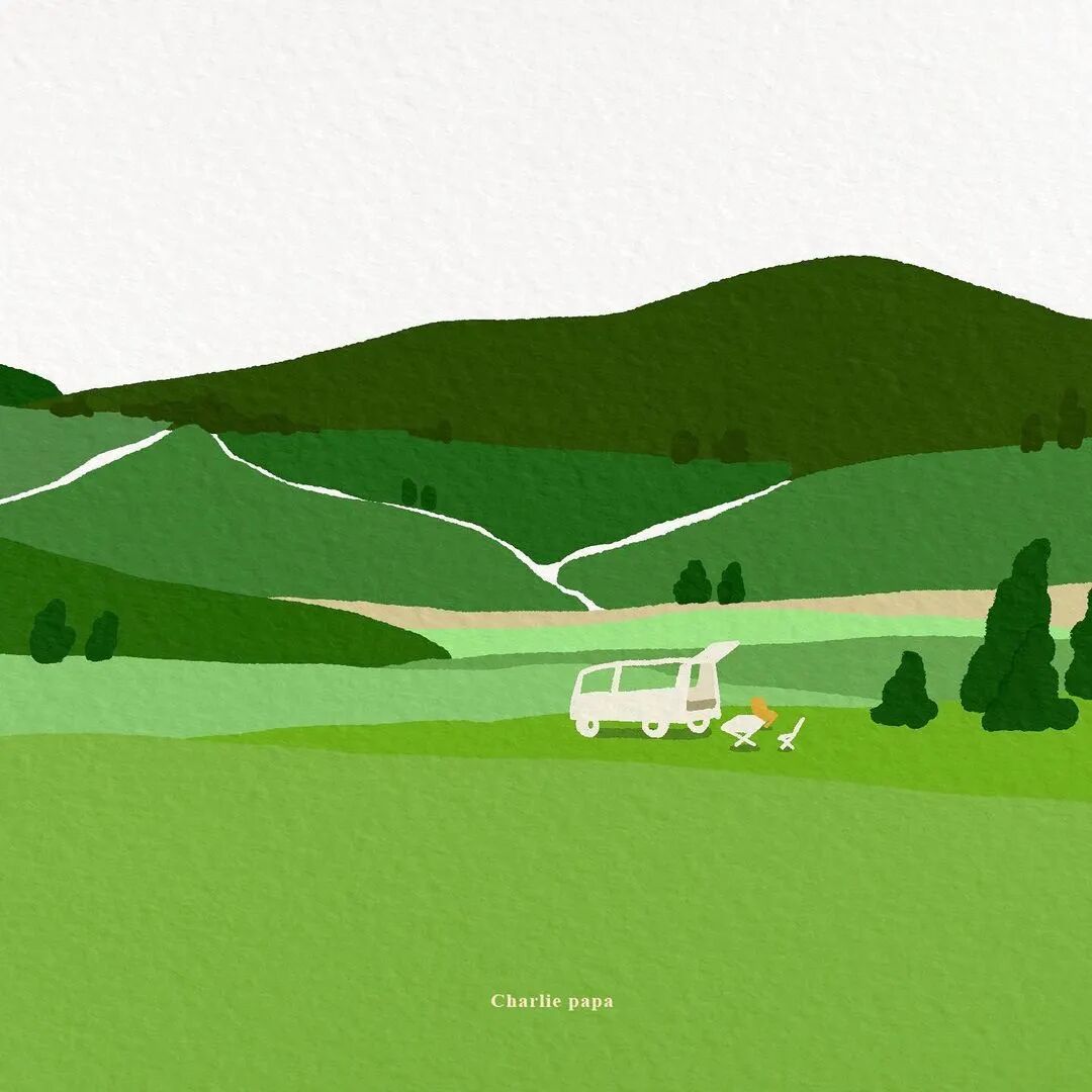 这就是插画师选材的独特性了。比如我就很难去立这样题目,但是charlie papa画出来的时候,作为旁观者就会感觉也不错啊,尤其是中间一个小蘑菇用了艳丽的黄色,淡雅之中还是有一点点变化性的。很有韵味,看着就很有治愈感。