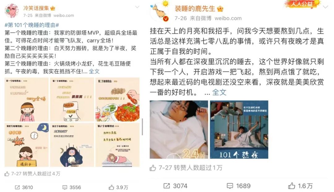 在社交媒体上,喜临门发起#第101个晚睡的理由#话题互动,精准捕捉夜猫子群体熬夜的心理机制,并联动不同领域的KOL,围绕话题发布原创UGC,KOL们脑洞大开的创意输出有趣有料、有针对性的内容,掀起巨大讨论度,助力品牌相关话题引爆网络。